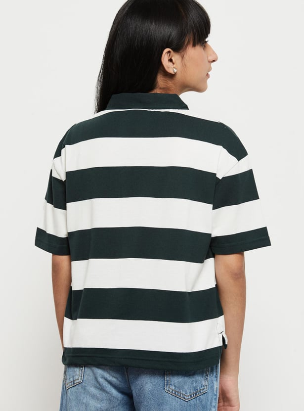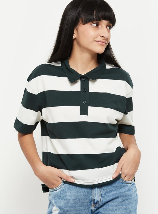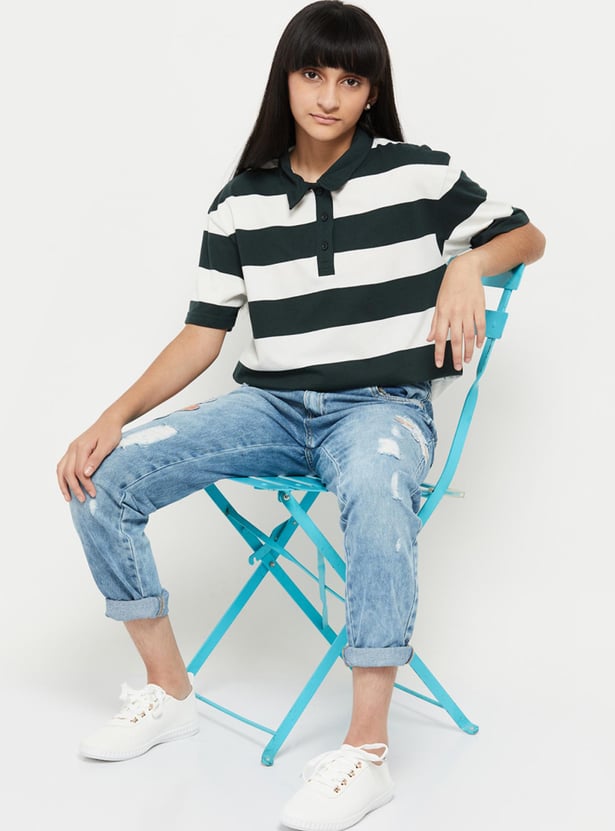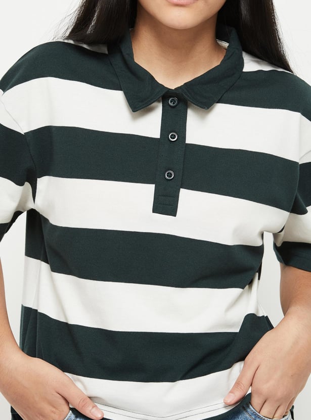 Girls Striped Polo Neck T-Shirt