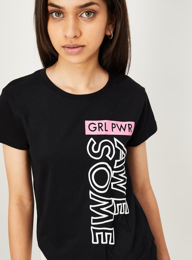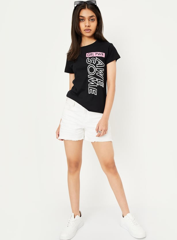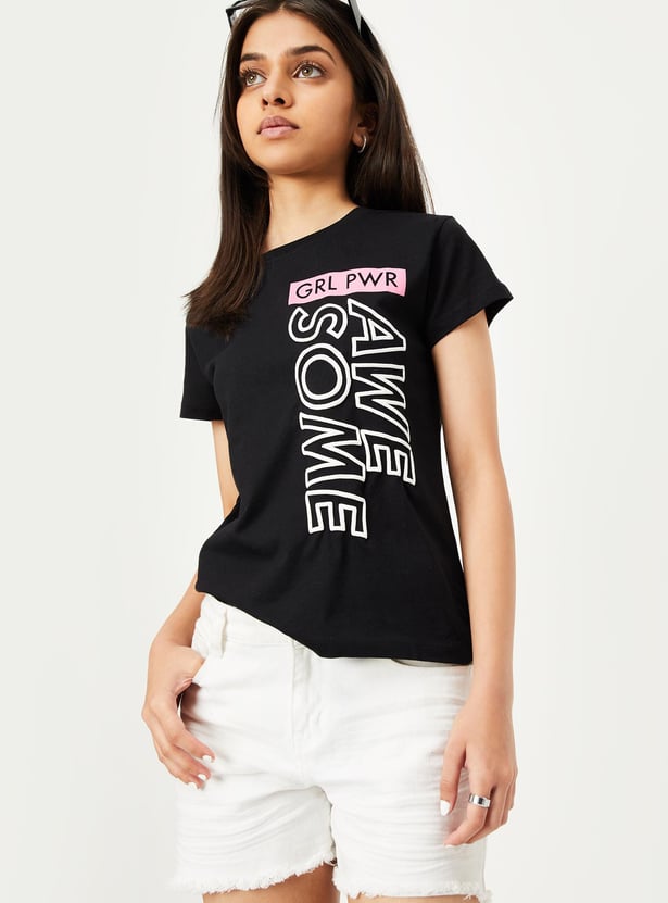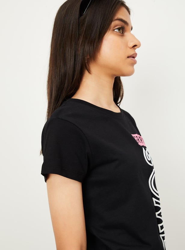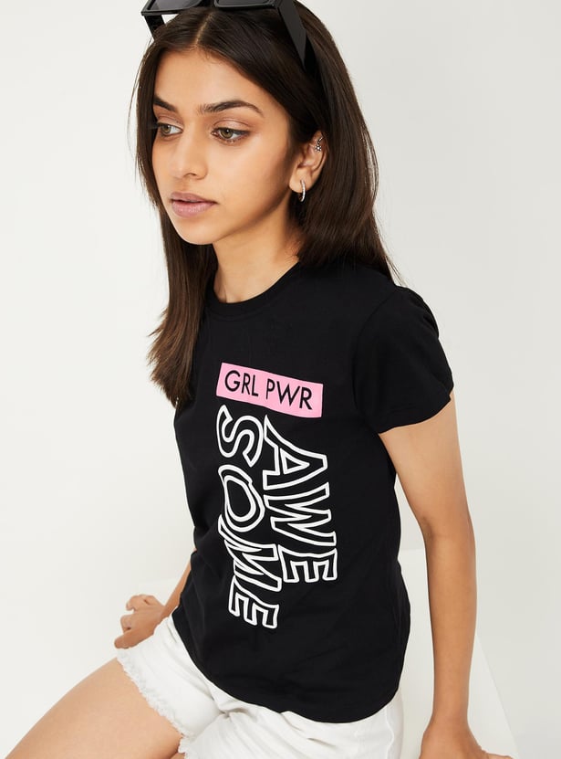 A perfect addition to your summer collection is this T-shirt highlighted with a typographic print. It features a round neck and short sleeves.