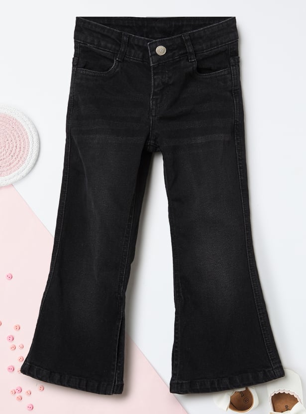 Girls Washed Slim Fit Wide-Leg Jeans