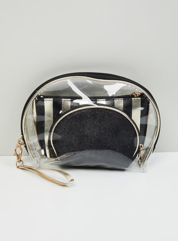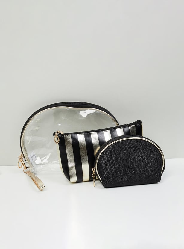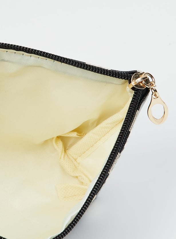 Designed with a printed surface, these set of pouches are complemented with a zip closure and a compartment to carry your daily essentials.