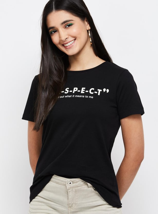MAX Women Printed Round Neck T-shirt