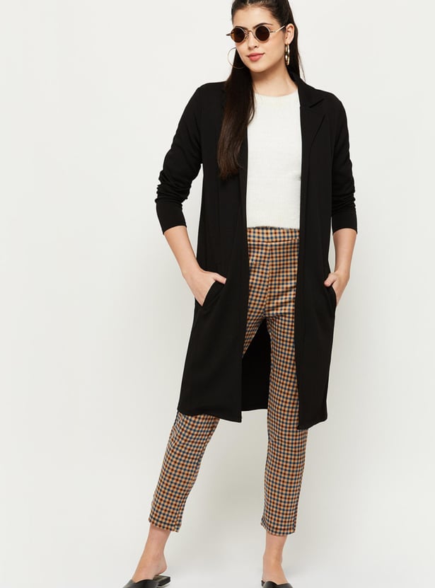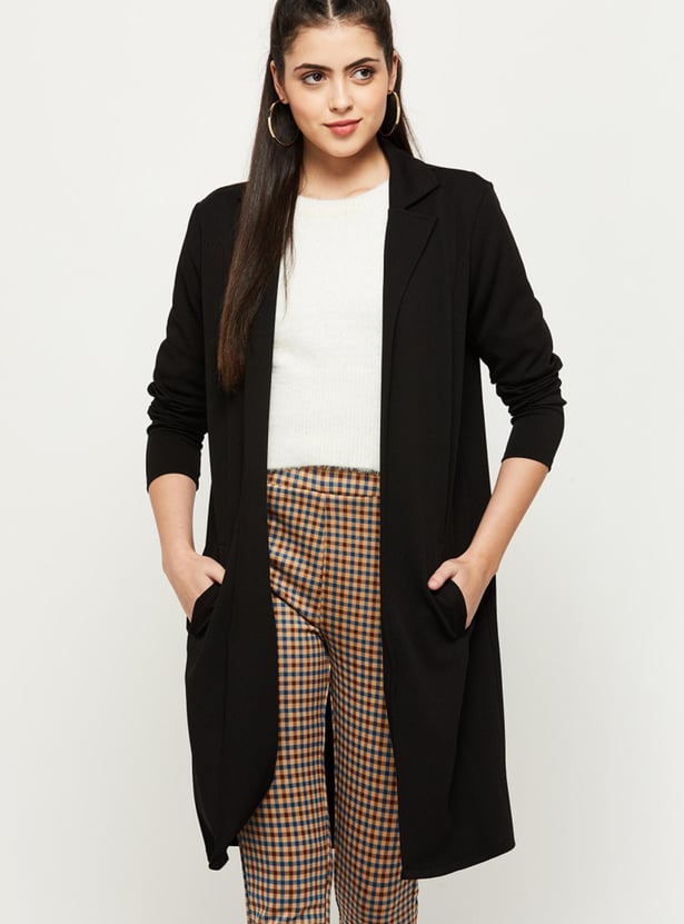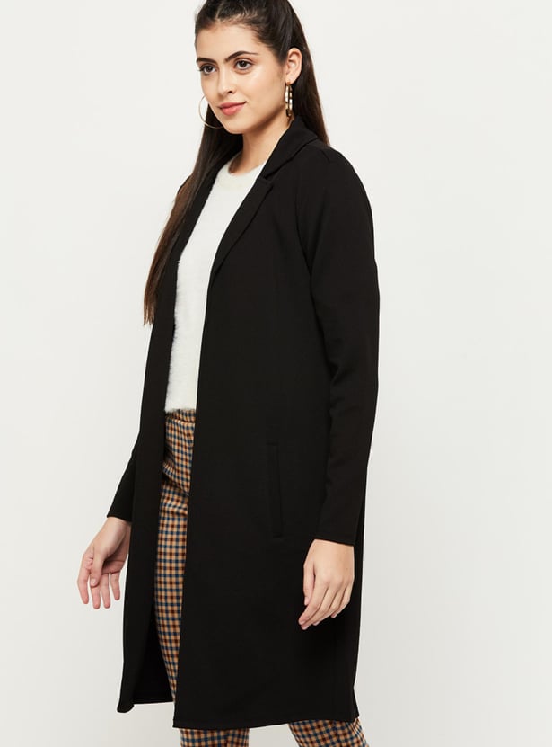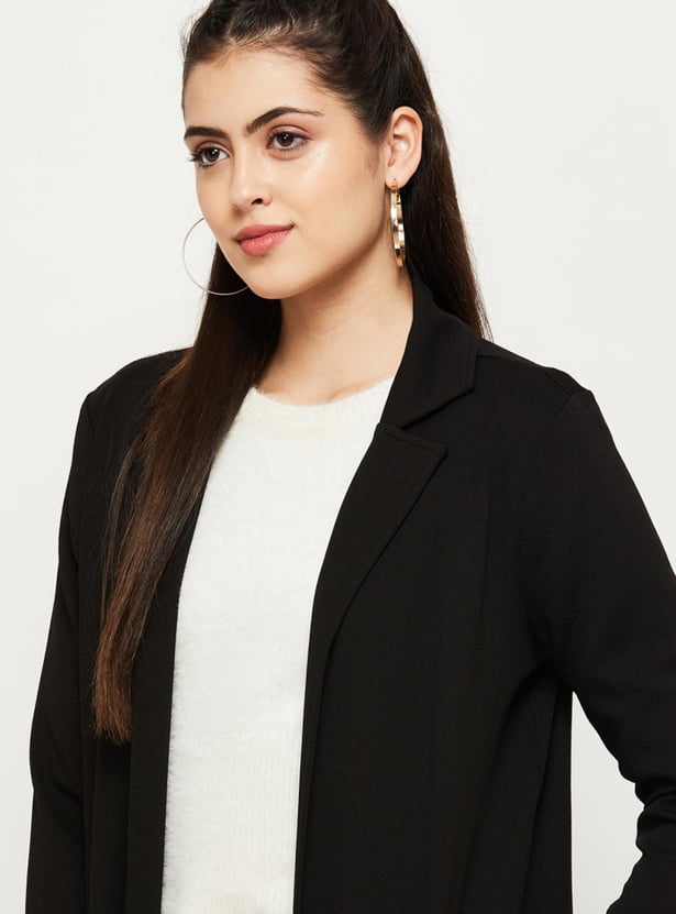 MAX Women Solid Notched Lapel Open-Front Jacket