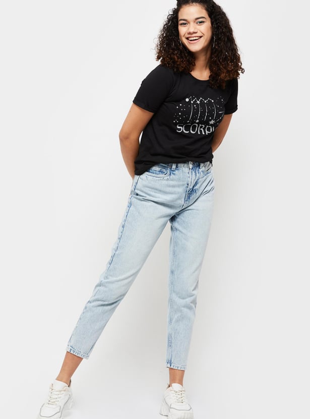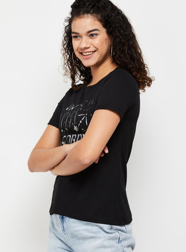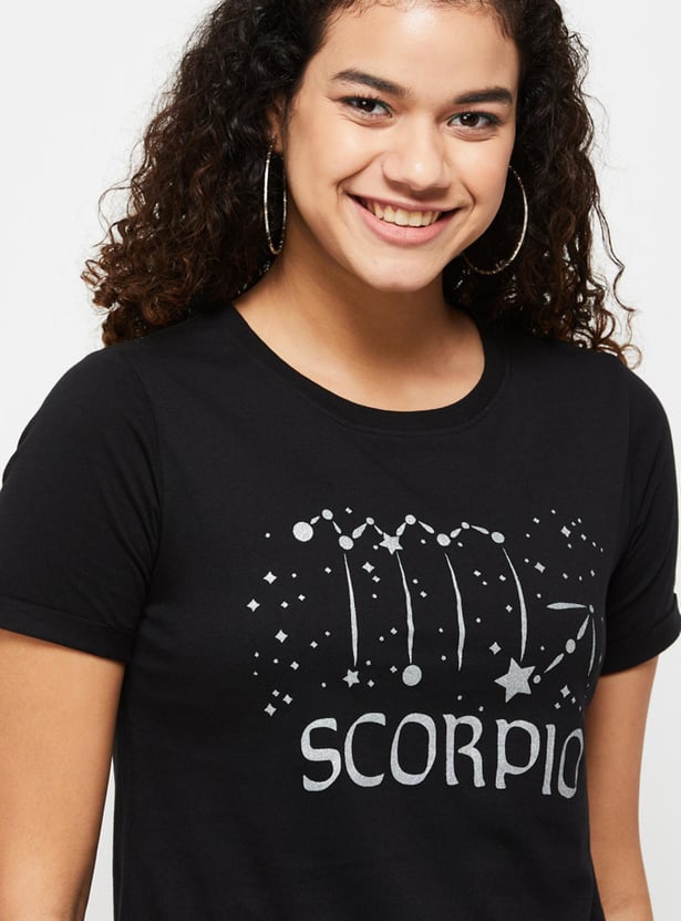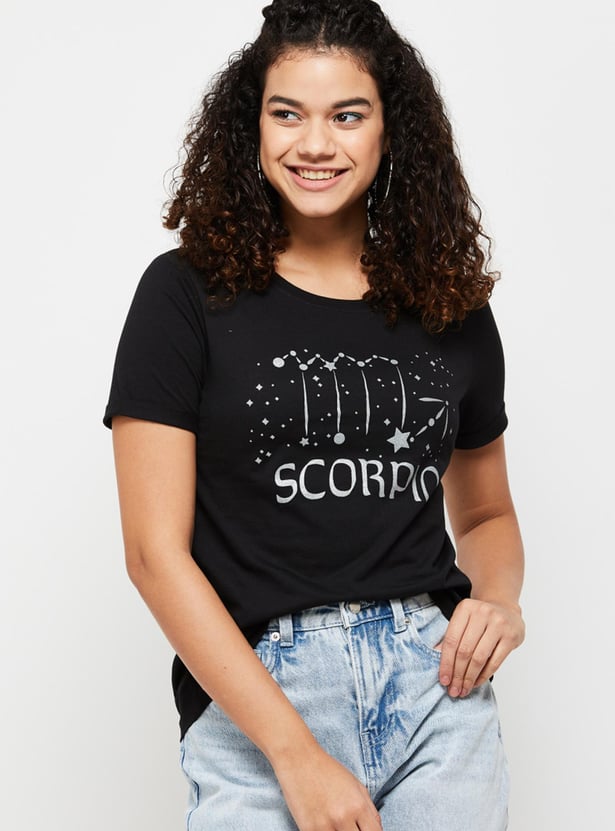 MAX Women Zodiac Printed Round Neck T-Shirt