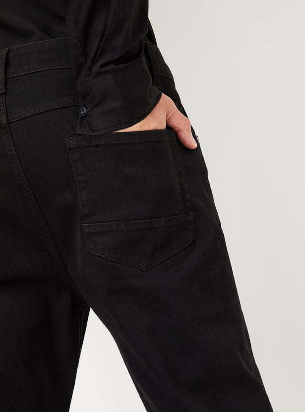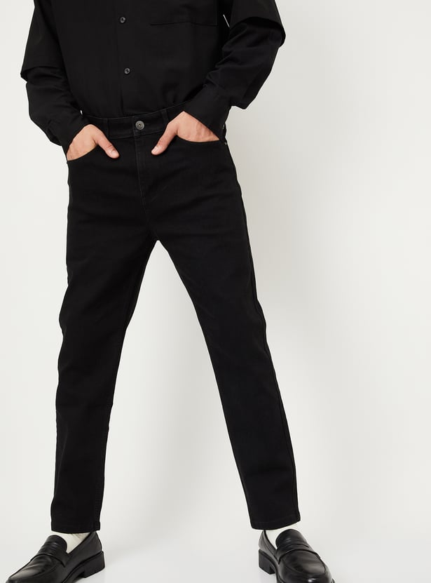 Revitalize your denim collection with these carrot-fit jeans, designed with a solid surface, belt loop waist, and classic five-pocket styling. Perfect for effortless and modern style.