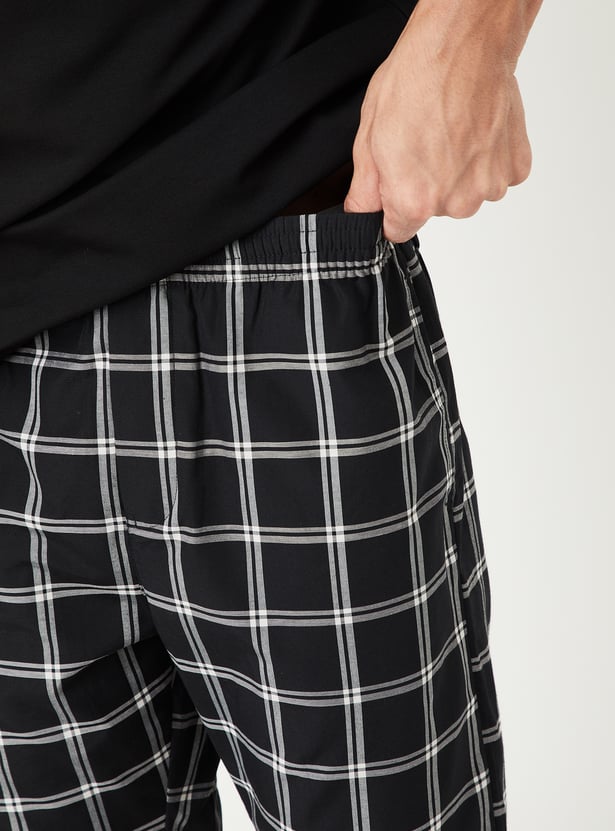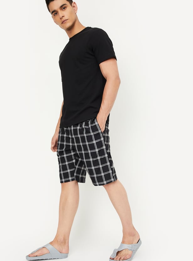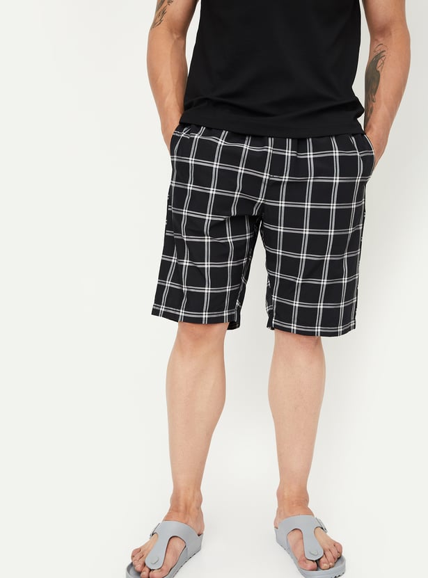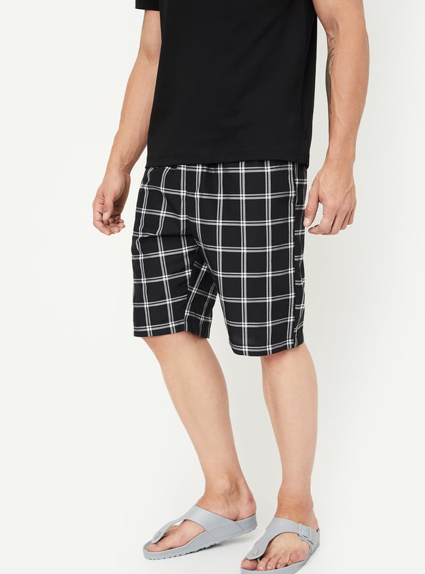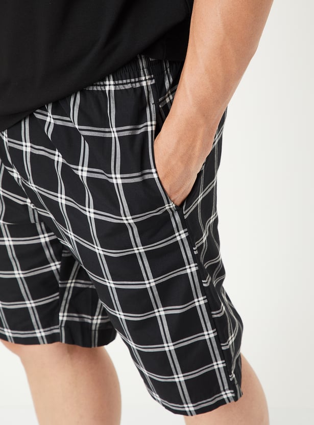 Made with the right mix of comfort and style, this pair of lounge shorts are highlighted with a classic checked pattern, a drawstring waist, and side insert pockets.