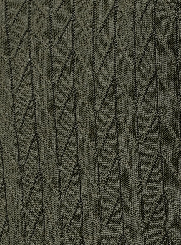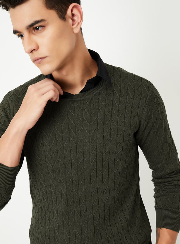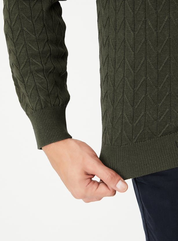 Add a cosy touch to your cold-weather wardrobe with this sweater. The chevron knit pattern is complemented with full sleeves and ribbed trim.