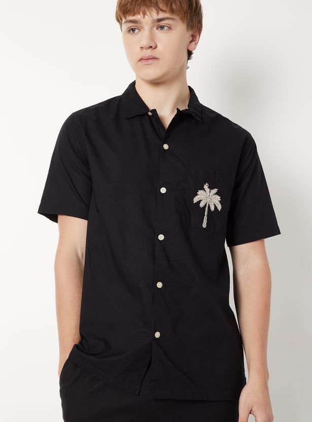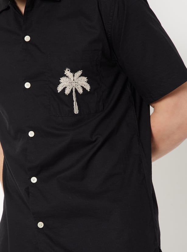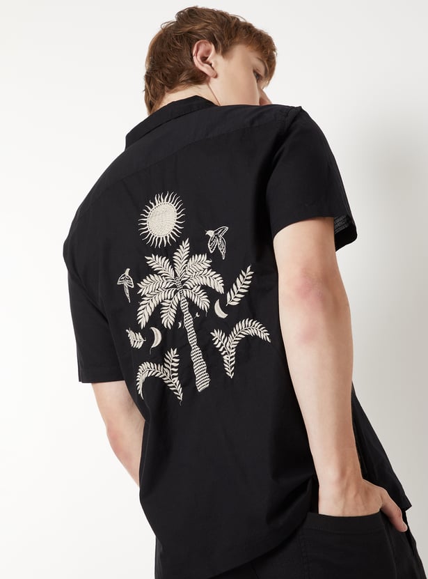 Step out in subtle elegance with this embroidered ethnic shirt. Featuring a spread collar, button closure, and half sleeves, it blends traditional detailing with a contemporary fit.