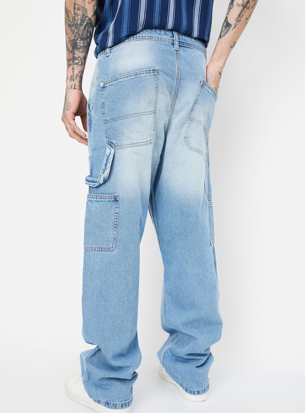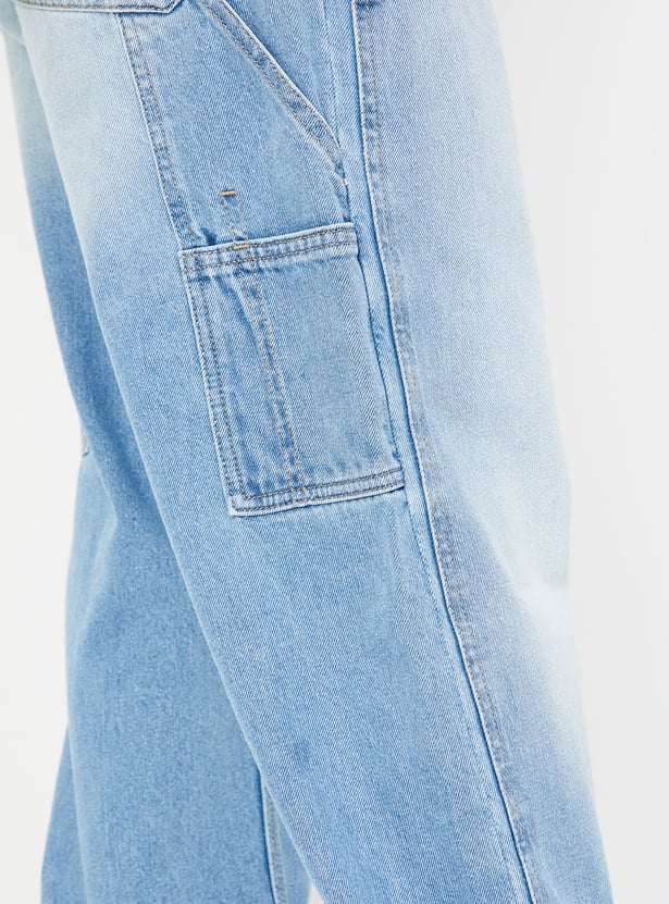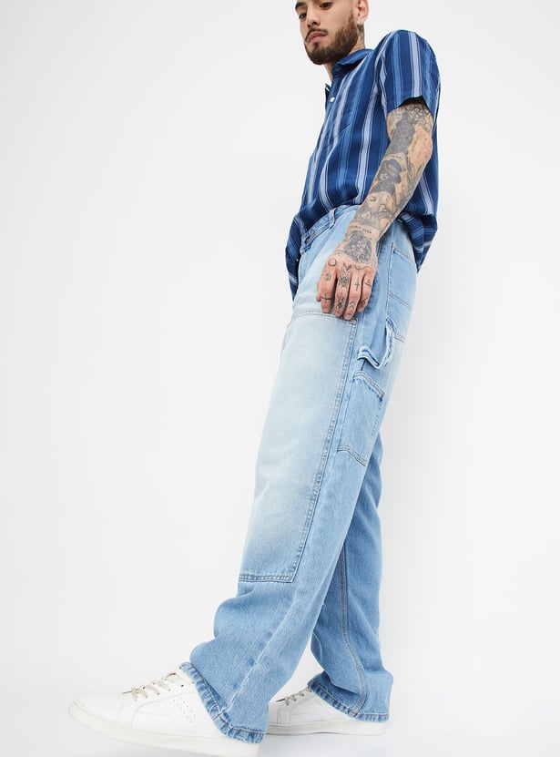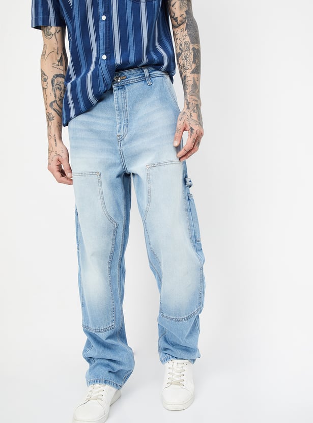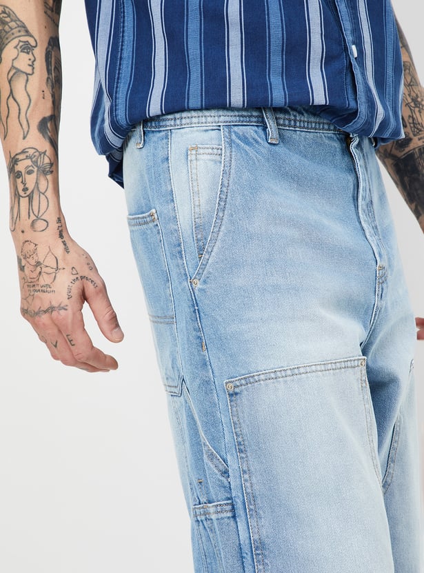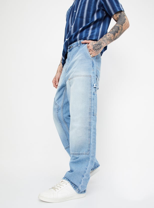 Rugged durability meets contemporary style, making this pair of jeans a versatile wardrobe staple. Designed with classic carpenter details like utility pockets and tabs, this pair has a faded design. It is designed with a belt loop waist, faded design, and whisker detailing.