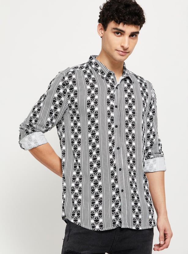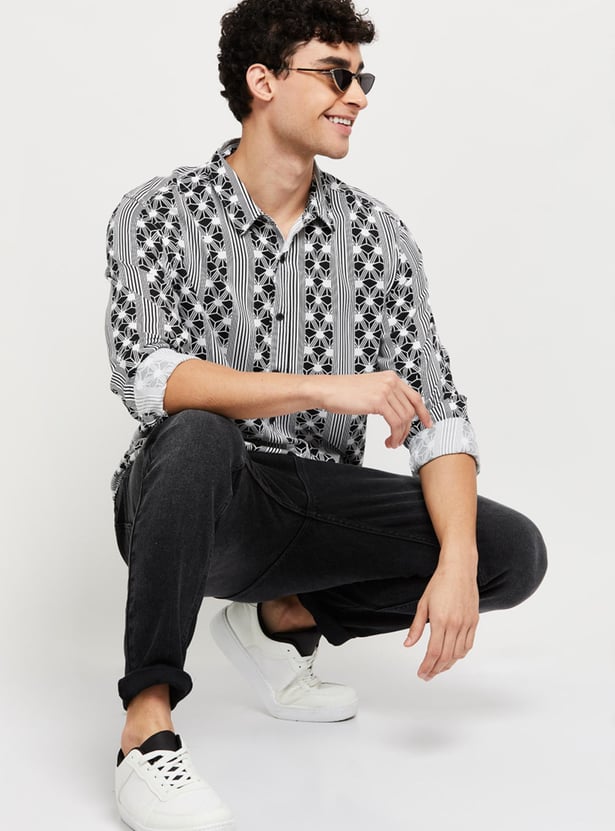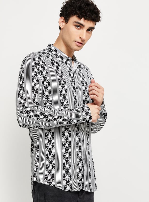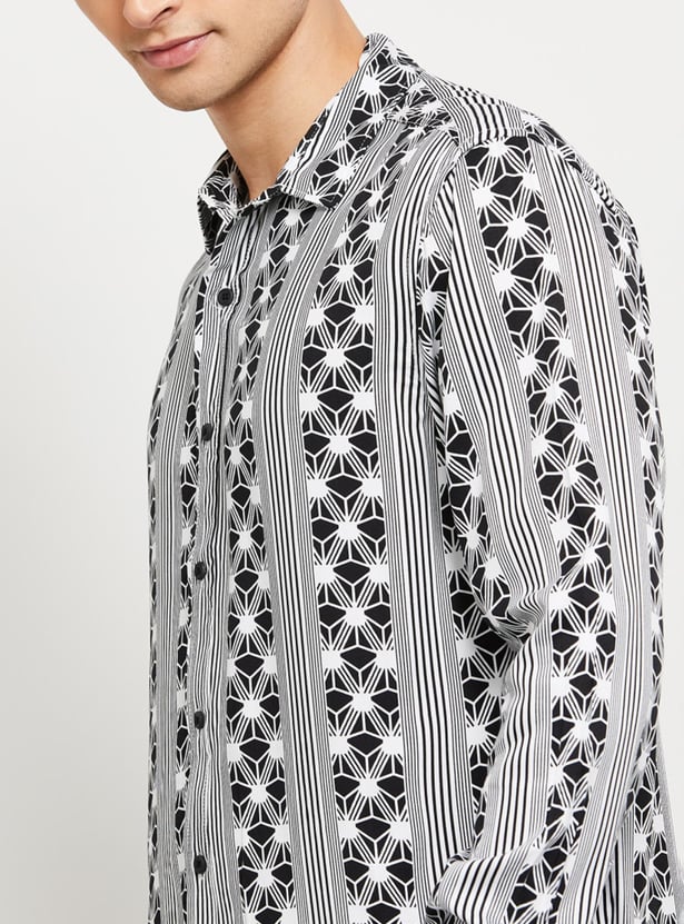 Fashioned for the ultimate comfort, and unique style, this casual shirt is designed with an interesting print, classic full sleeves, and spread collar. Get an uplifted smart casual appearance.