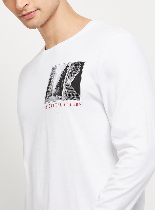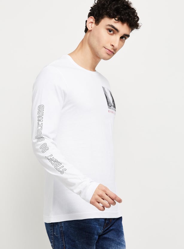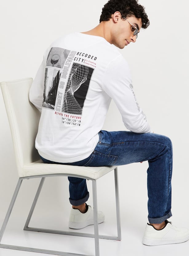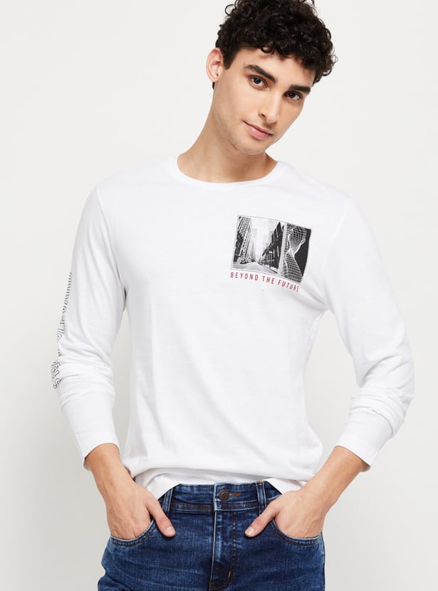 Add versatility to your basic look with this casual printed T-shirt designed with a crew neckline and full sleeves.