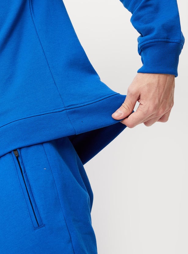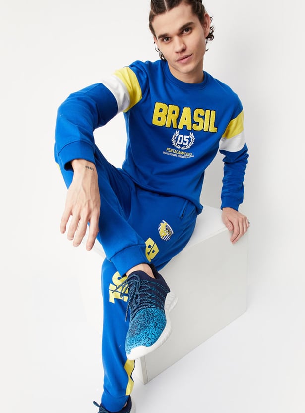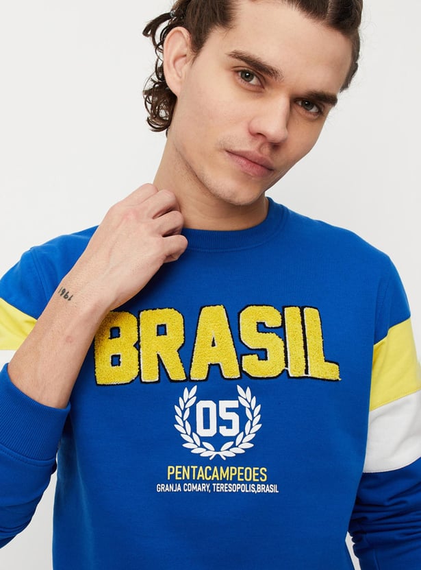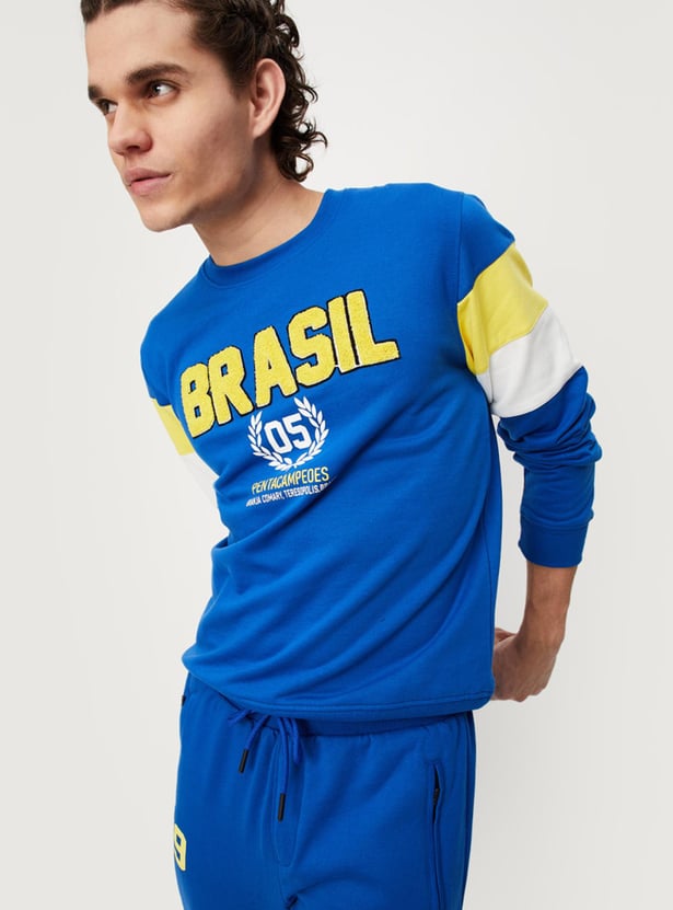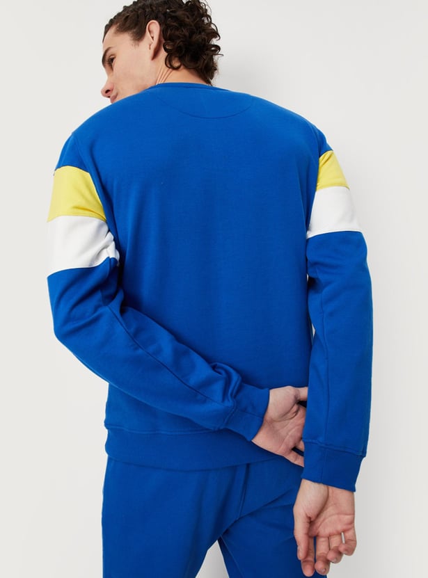 The perfect intersection of street and sporty styles, this sweatshirt is highlighted with graphic prints and applique on the chest. It features a crew neck, long sleeves with a colourblock design, and ribbed trim. Style the sporty look by teaming up this sweatshirt with joggers and sneakers.