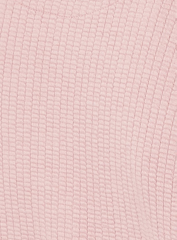 This T-shirt is the perfect balance of style and comfort. It has a polo collar, half sleeves, and a knit pattern. It has a zip closure and side slits to complete the look.
