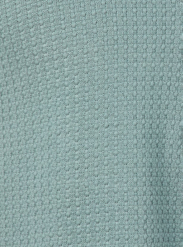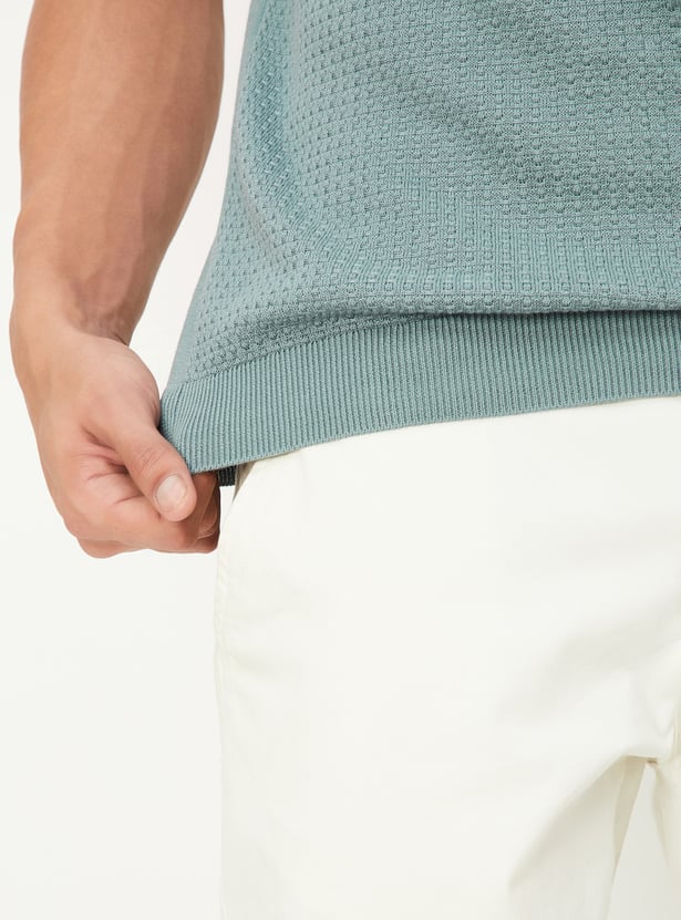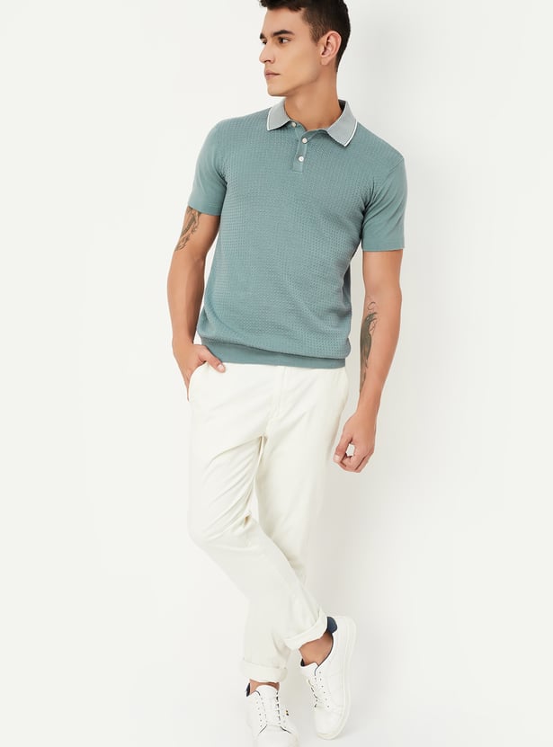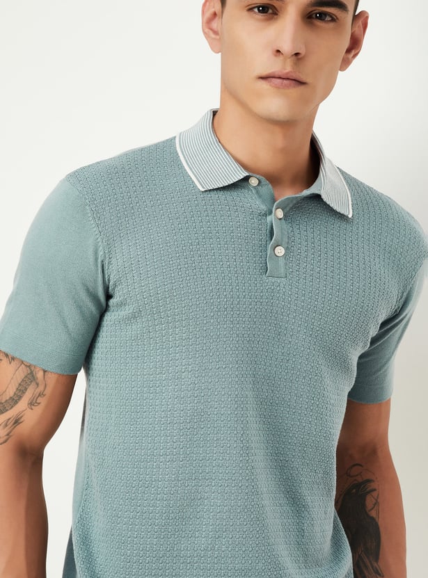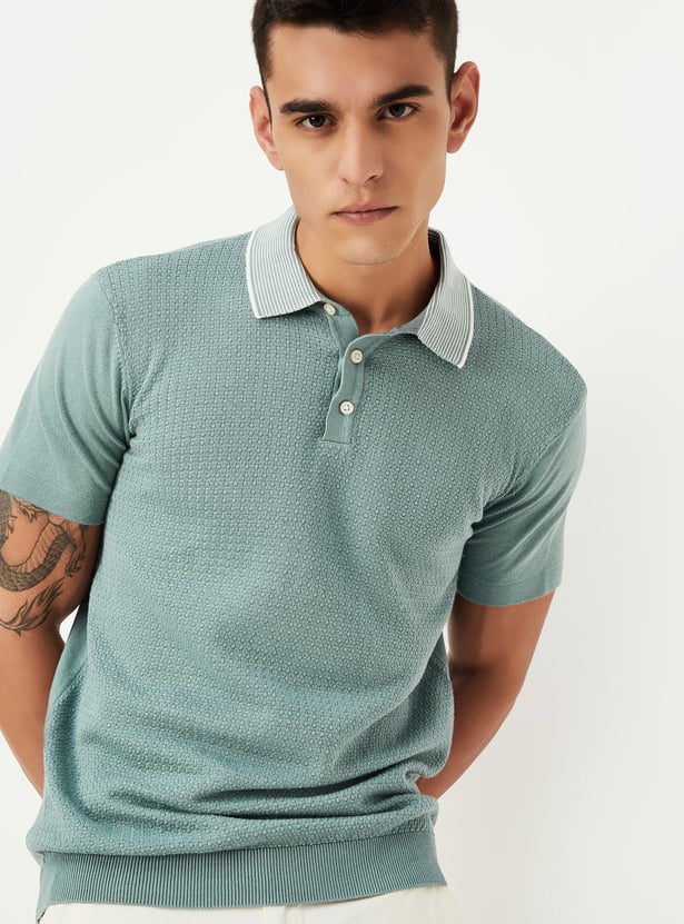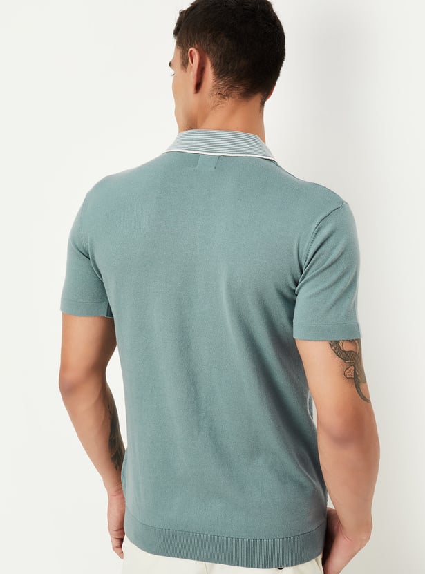 Level up your street style with this effortlessly cool T-shirt. With its knit design, striped polo collar, ribbed hem, and half sleeves, it's the perfect combination of comfort and style for the season ahead.