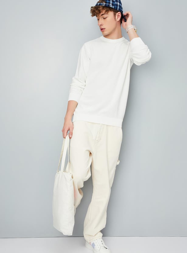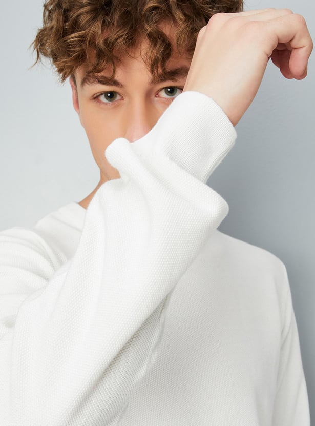 This sweater will keep you warm this season with its crew neck, long sleeves, and ribbed trim. For a stylish, relaxed style, wear this sweater with a pair of jeans and sneakers.