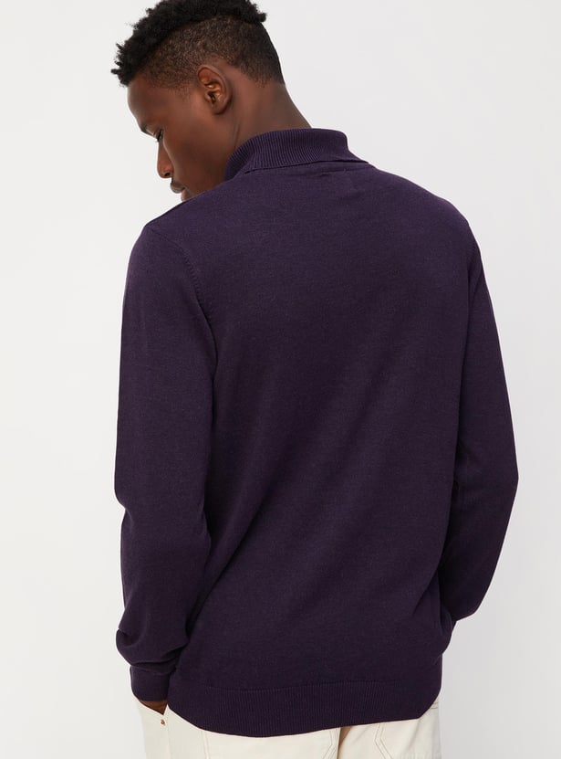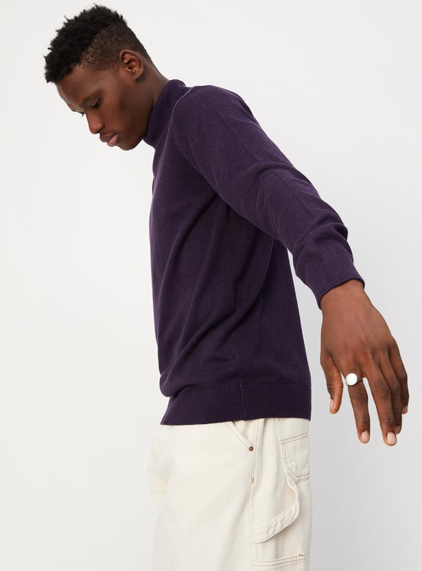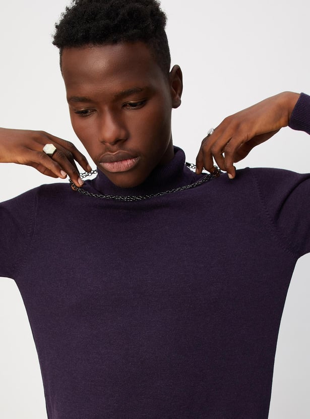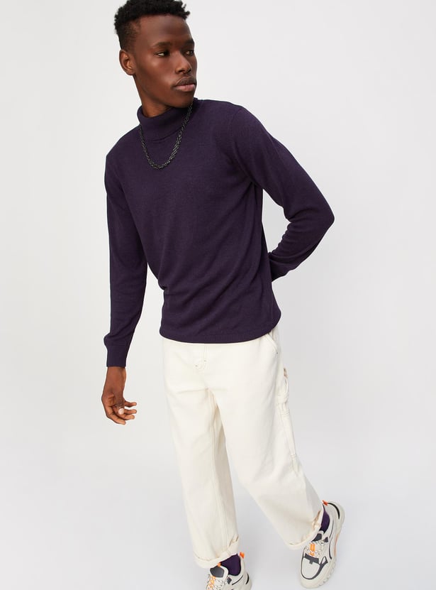 Set yourself for winter with this sweater featuring a turtle-neck, full sleeves, and ribbed hem. Style it with a pair of jeans and sneakers for a trendy look.