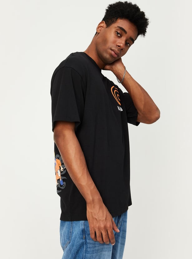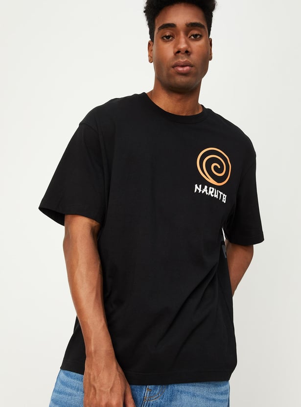 Men Naruto Back Printed Relaxed Fit T-shirt