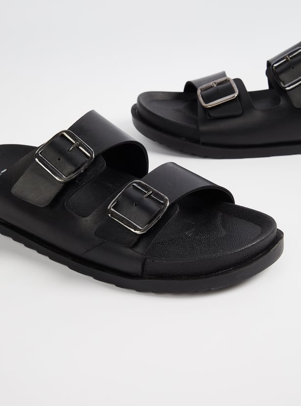 Step into effortless style with these open-toe sandals designed for everyday comfort. Featuring buckle detailing and a slip-on design, they offer easy wear with a chic finish.