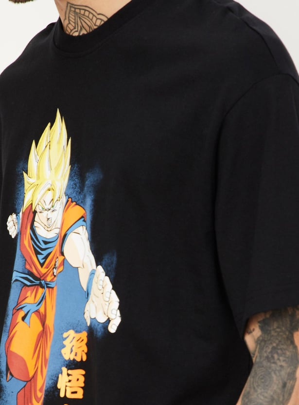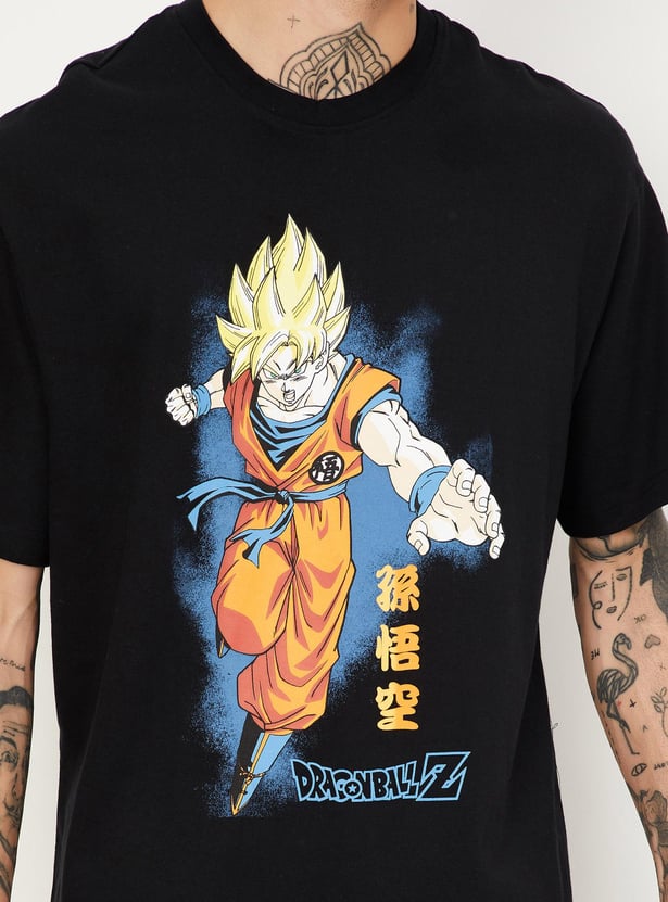 Add some flair to your casual wardrobe with this T-shirt in an oversized fit profile. It has a crew neck, short sleeves, and a Dragon Ball Z-themed graphic print on the front. A pair of jeans and sneakers with this tee gets you ready for the weekend in style.