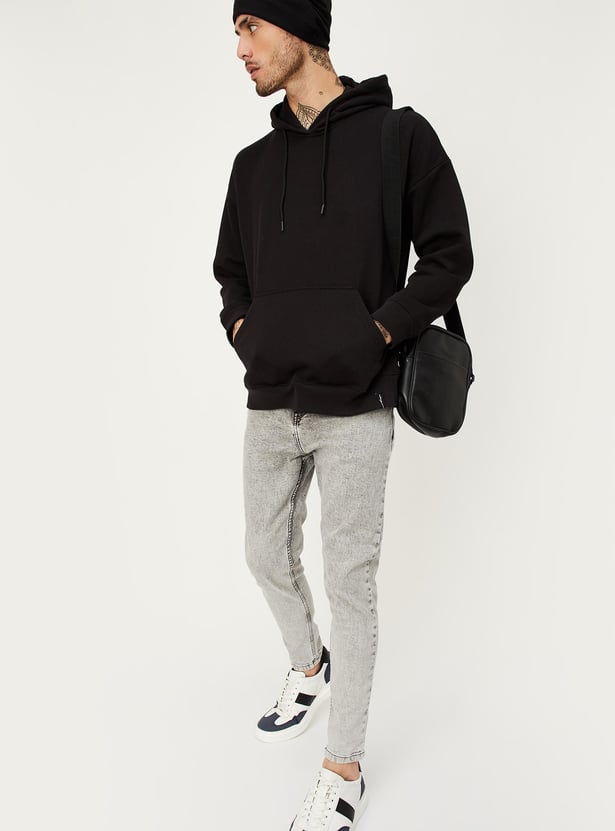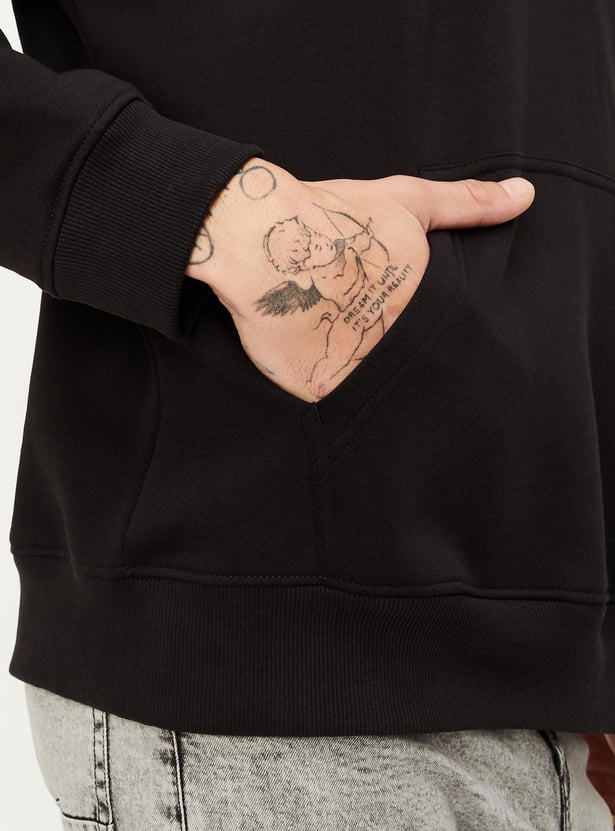 Set yourself for winter with this casual sweatshirt featuring a hooded neck, full sleeves, solid surface, and kangaroo pockets. Style it with a pair of jeans and sneakers for a trendy look.