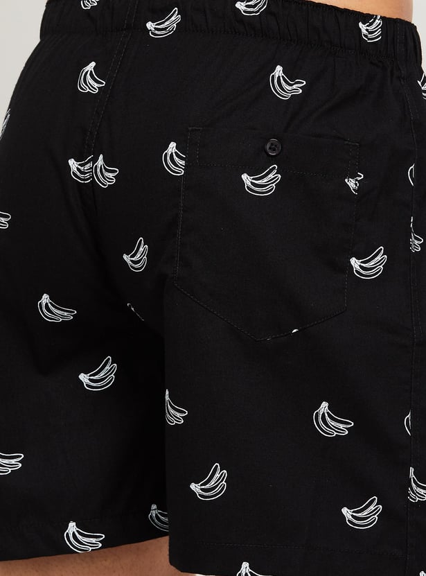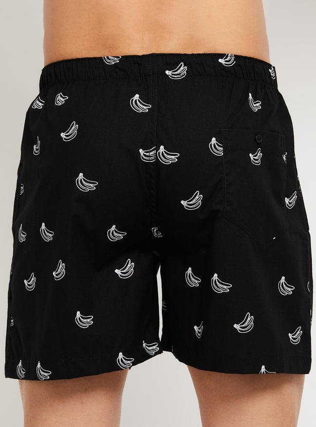 Make your day a comfortable one by adorning this pair of boxers that is made from a soft fabric. It comes with all over prints, side pockets, and an elasticated waistline.