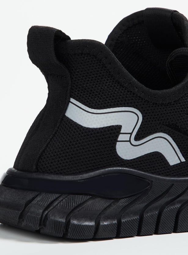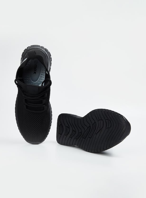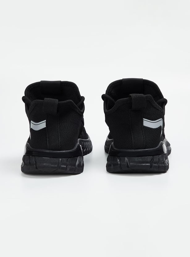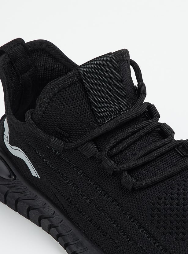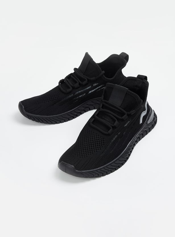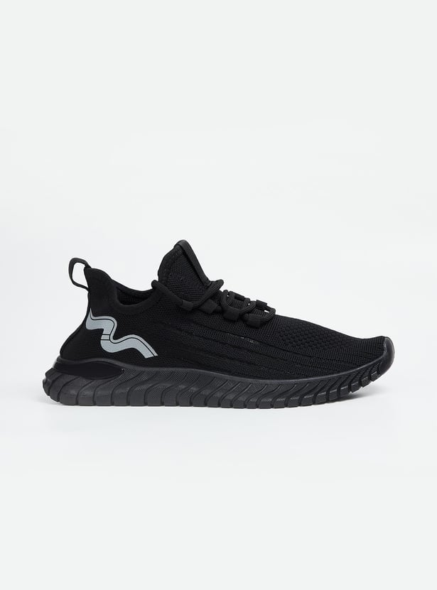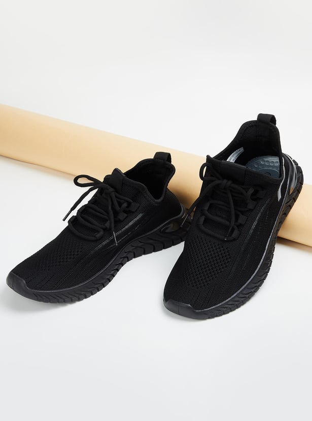 Train harder with this pair of shoes. It features a breathable flyknit upper with prints, a round toe, lace-up closure, a padded footbed, and a durable grippy outsole.
