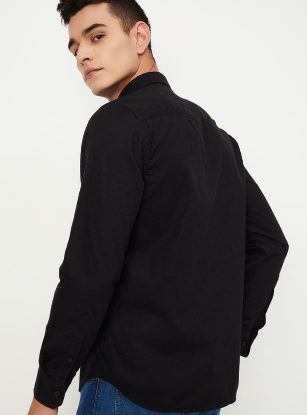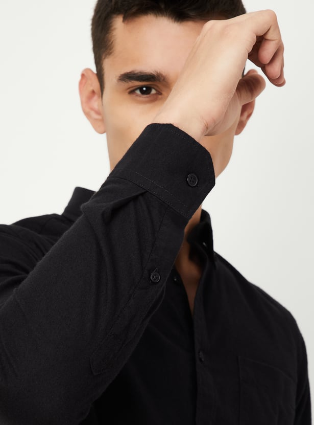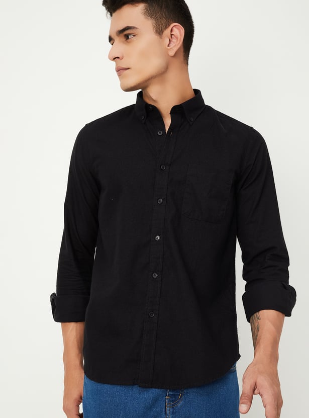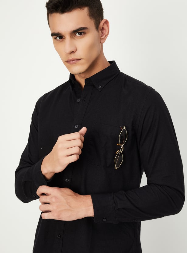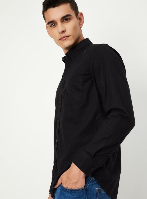 Elevate your casual wardrobe with this solid shirt, featuring a button-down collar, full sleeves, a button placket, and a patch pocket. Perfect for versatile styling, this shirt combines classic design with modern details for a polished look.