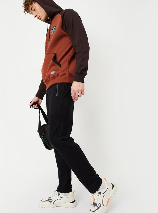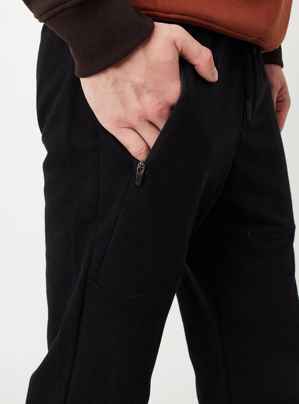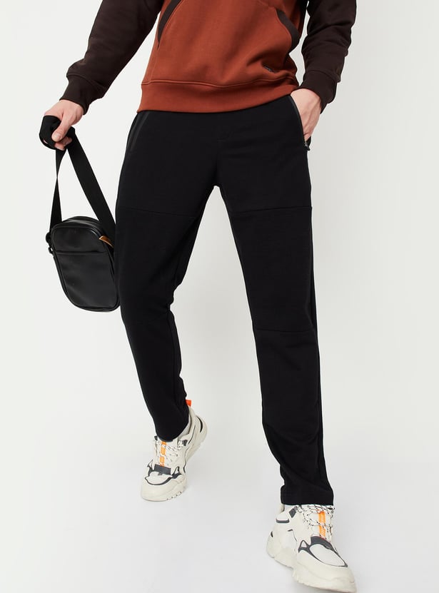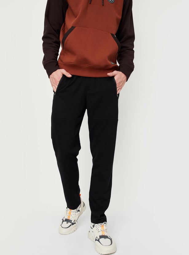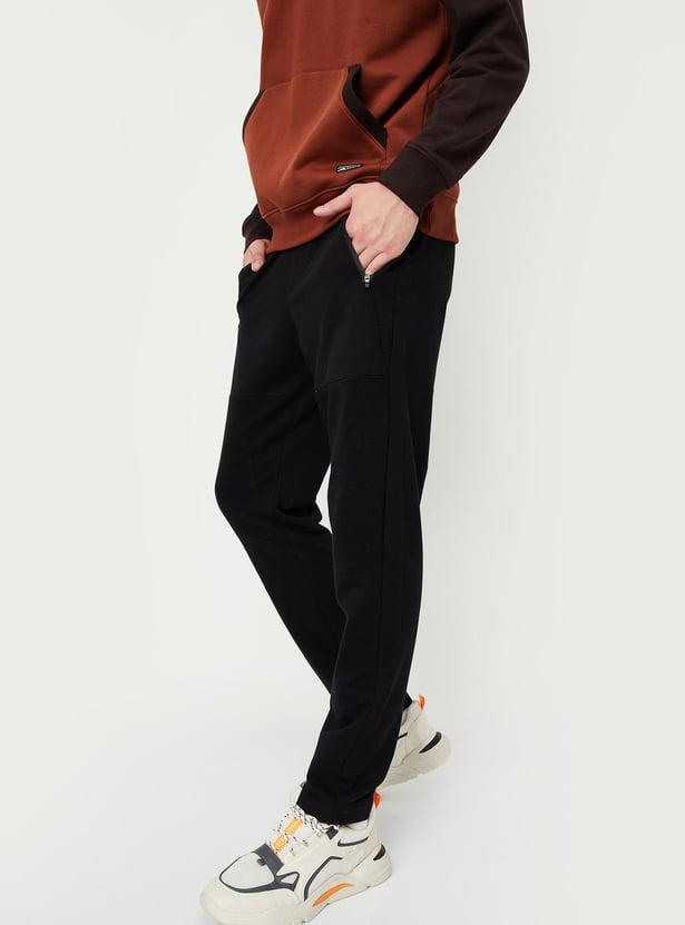 Sweat out in style in this pair of track pants. It features a drawstring waist, zip pockets, ribbed panels, and a full-length profile. Team this pair of pants with a tee and sneakers to look gym-ready.