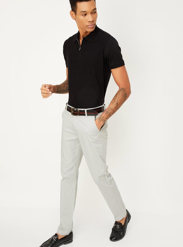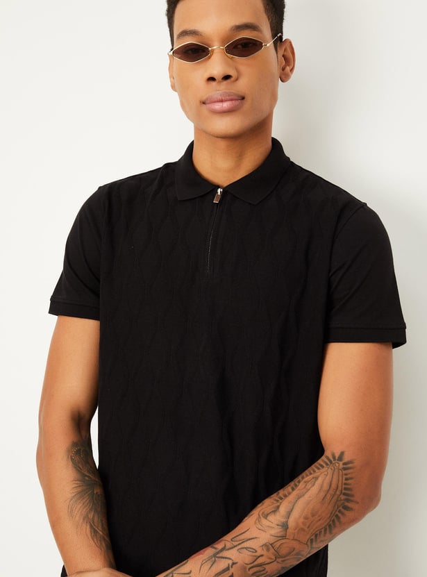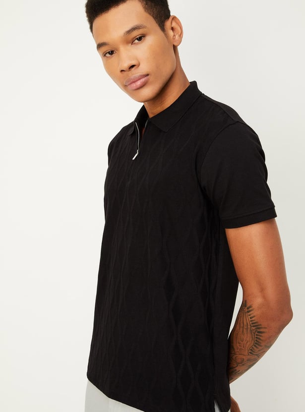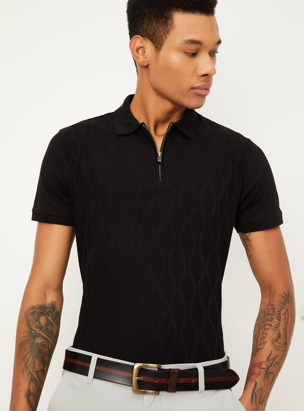 Men Slim Fit Geometric Patterned Zip Polo T-shirt