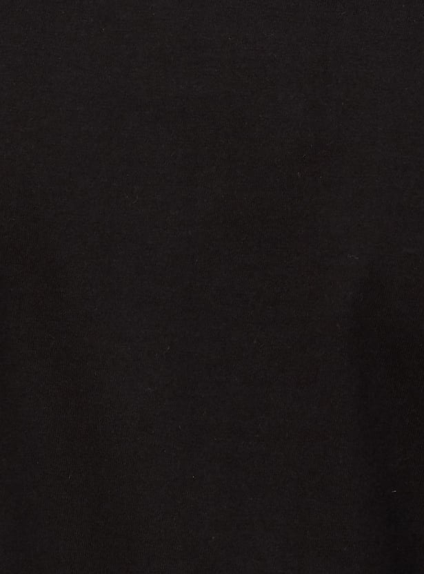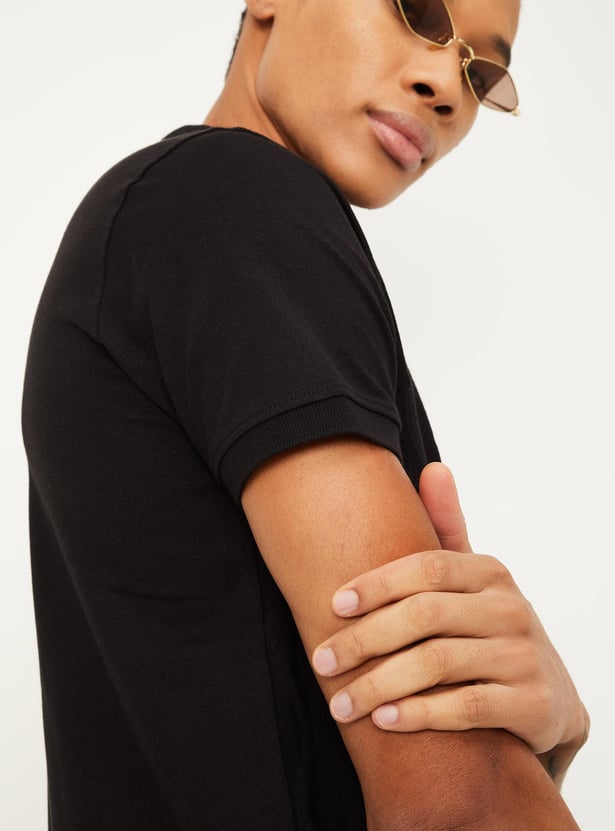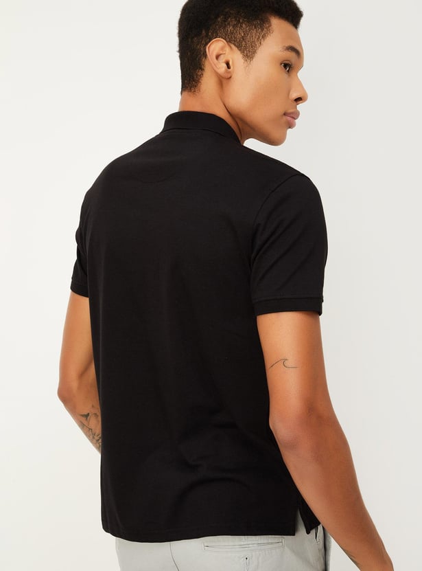 A stylish fusion of comfort and sophistication, this T-shirt effortlessly elevates your weekend wardrobe. It showcases a knit design with a geometric pattern that adds to the visual appeal. This tee has a polo collar, half sleeves, ribbed trim, a zip placket, and side slits at the hem.
