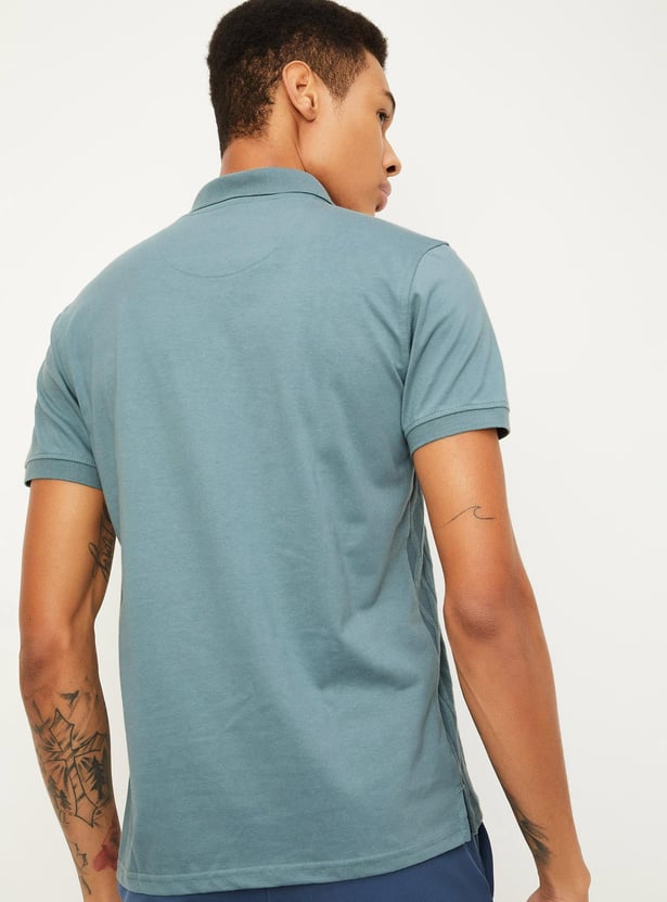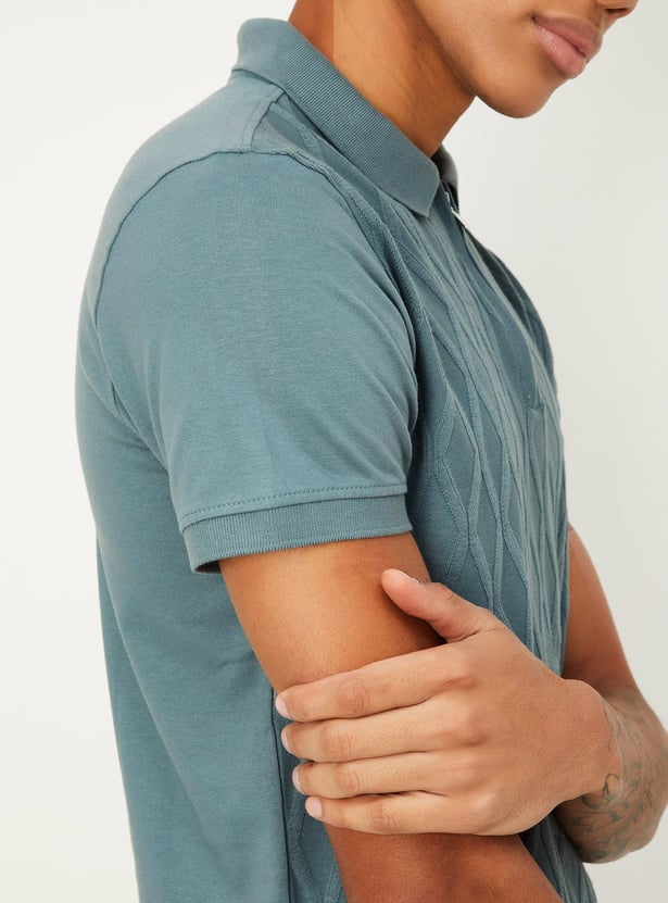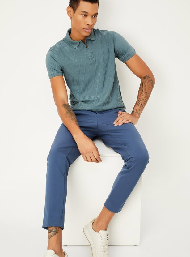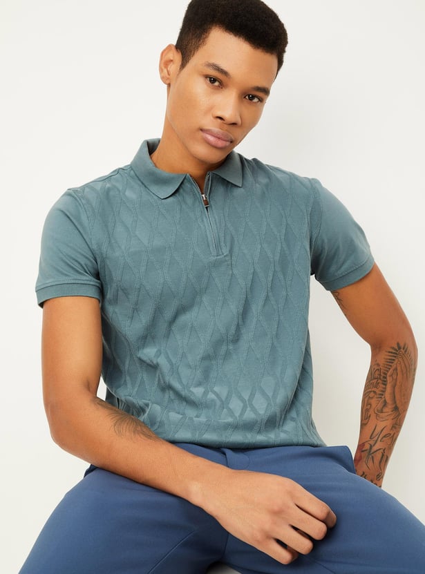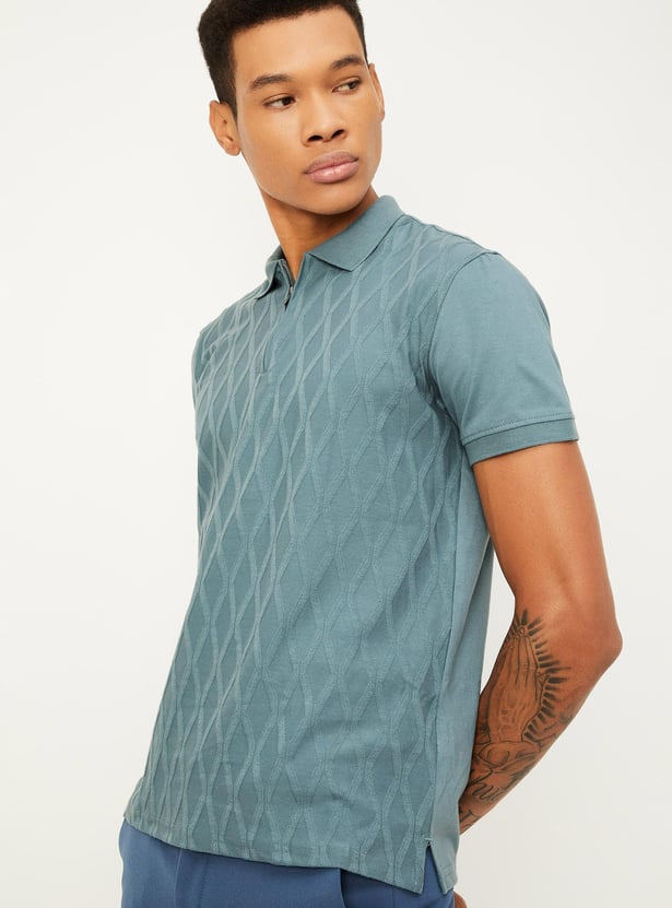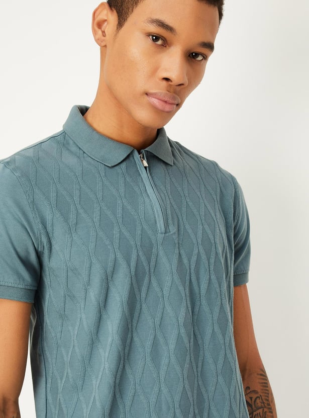 Men Slim Fit Geometric Patterned Zip Polo T-shirt