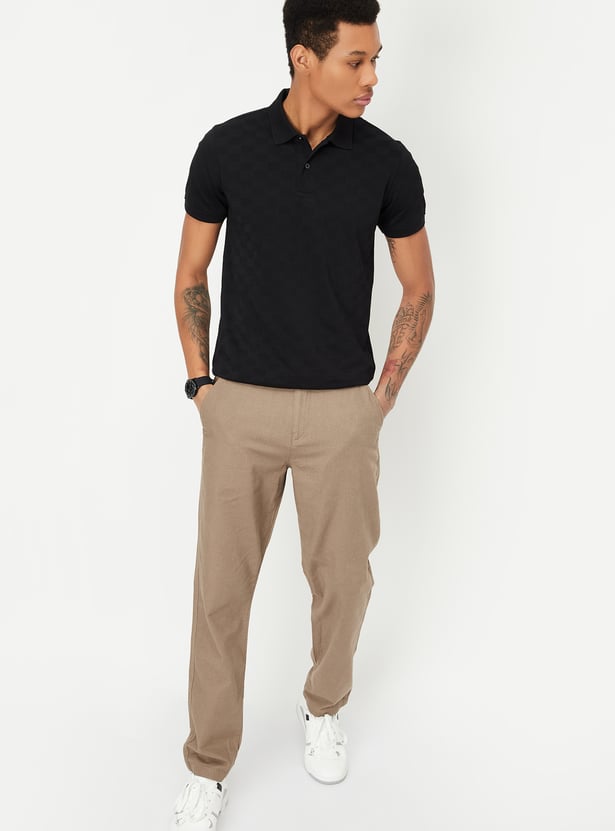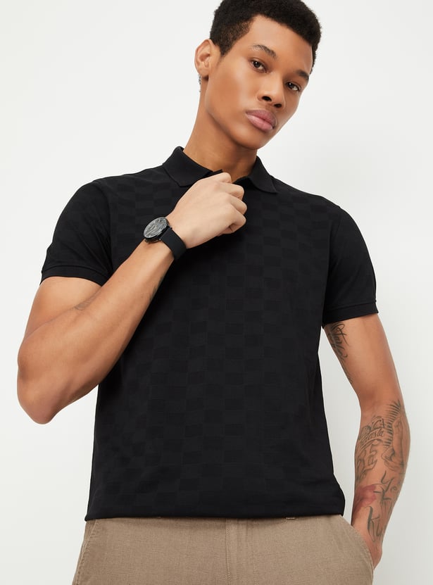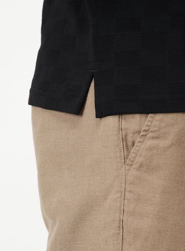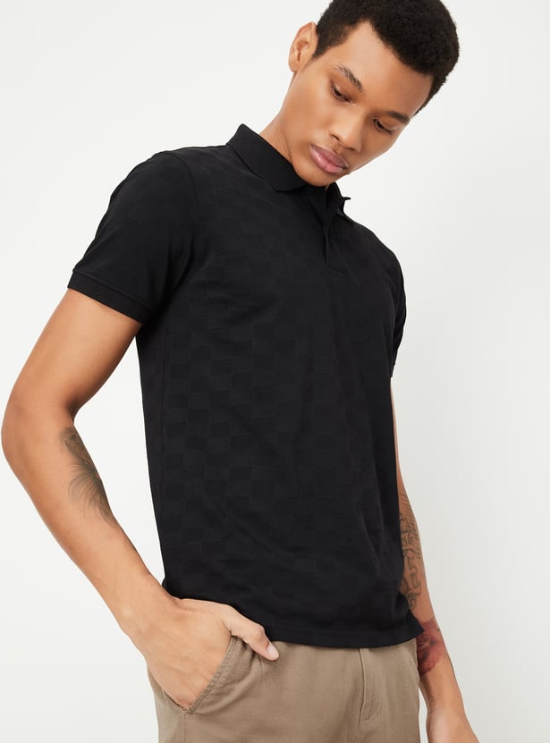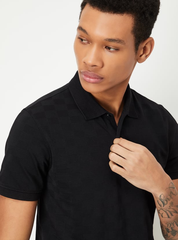 Elevate your casual outfit with this knitted polo t-shirt featuring short sleeves, a classic polo collar, and a button placket that adds a touch of fashion to your look.