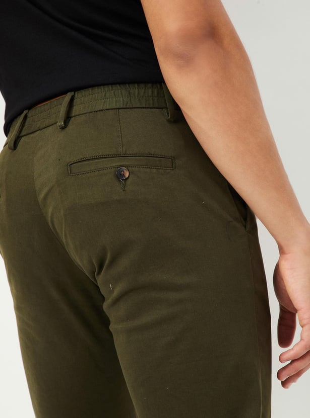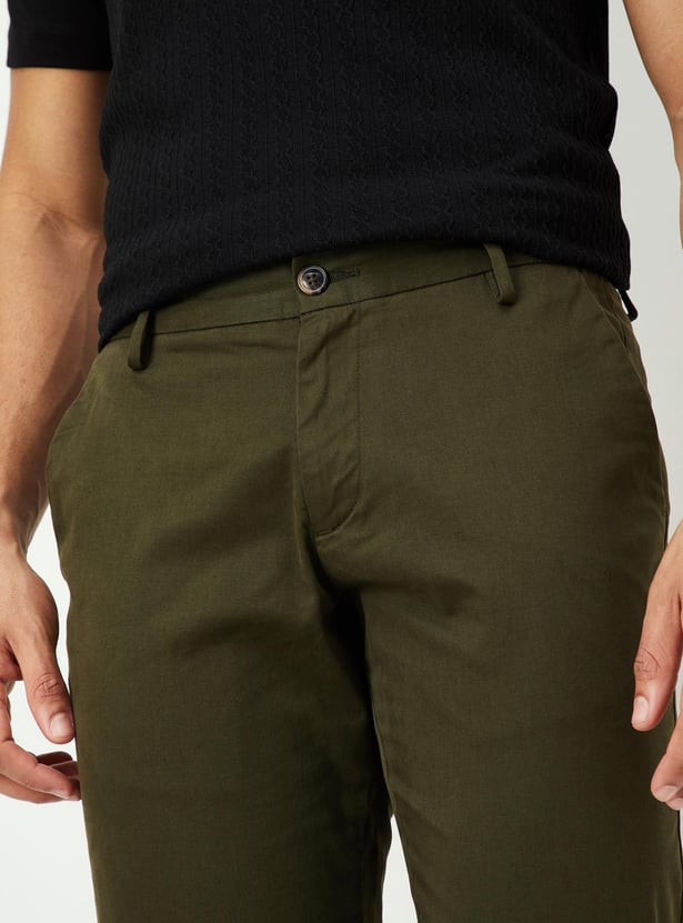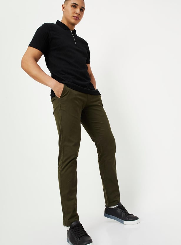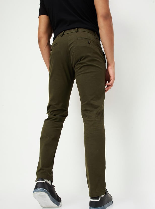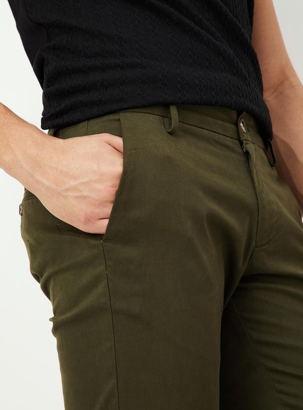 Men Slim Fit Solid Casual Trousers