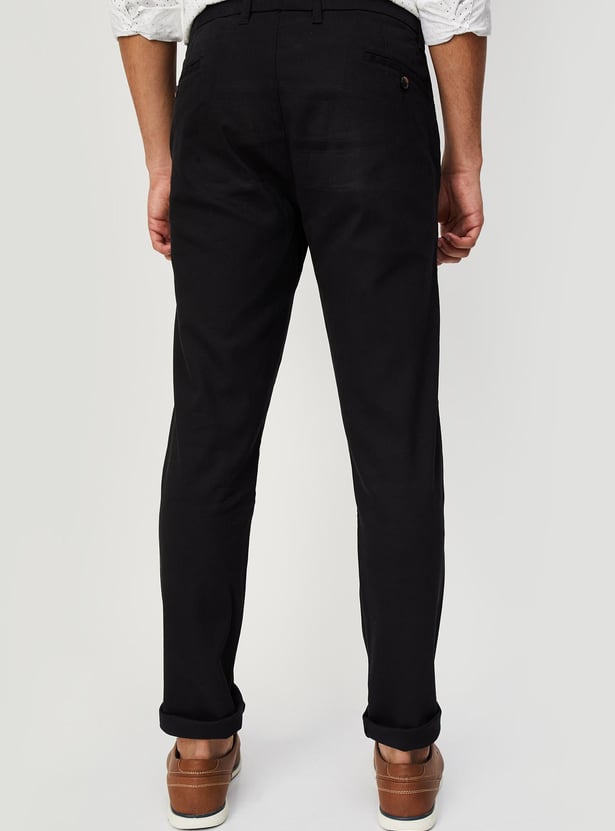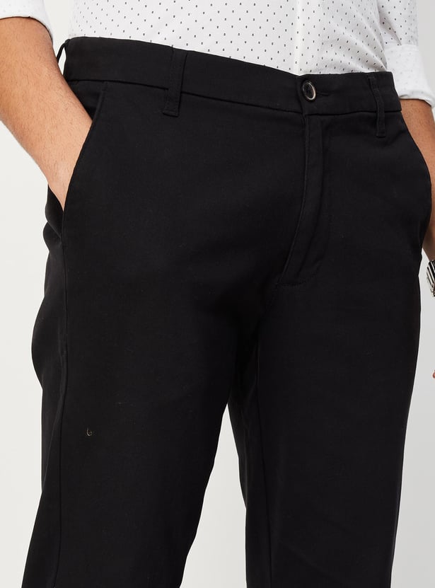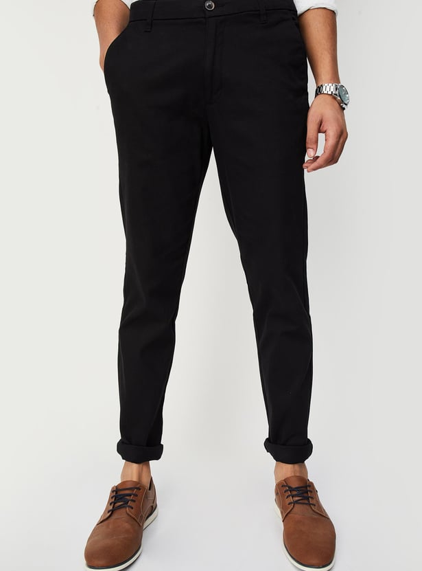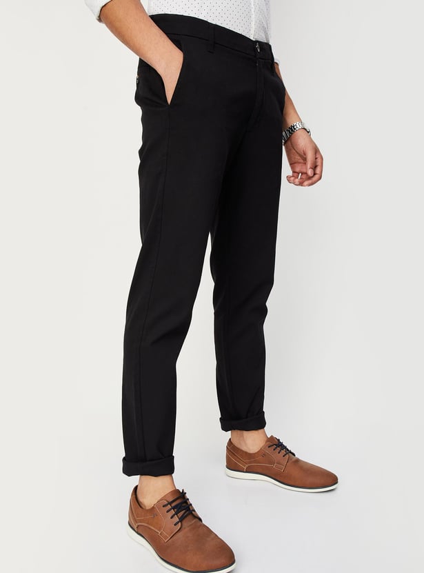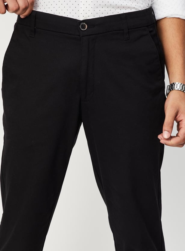 This pair of chinos can add flair and refinement to your casual ensemble. It has a solid surface, a button closure, belt loops, a full-length construction, and insert pockets. Style it with a pair of sneakers for a dapper look.