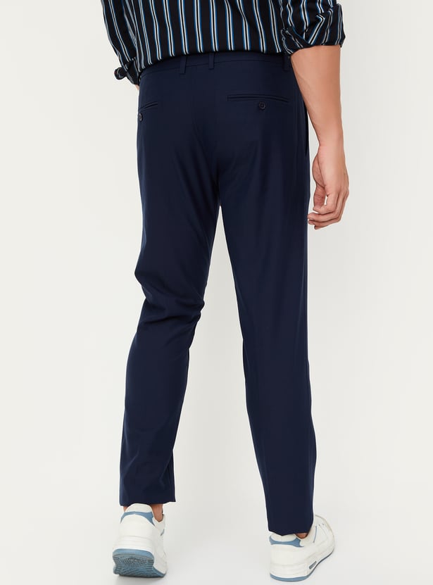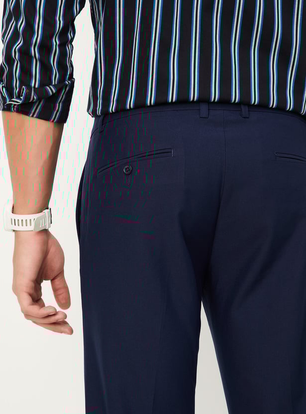 Men Slim Fit Solid Formal Trousers