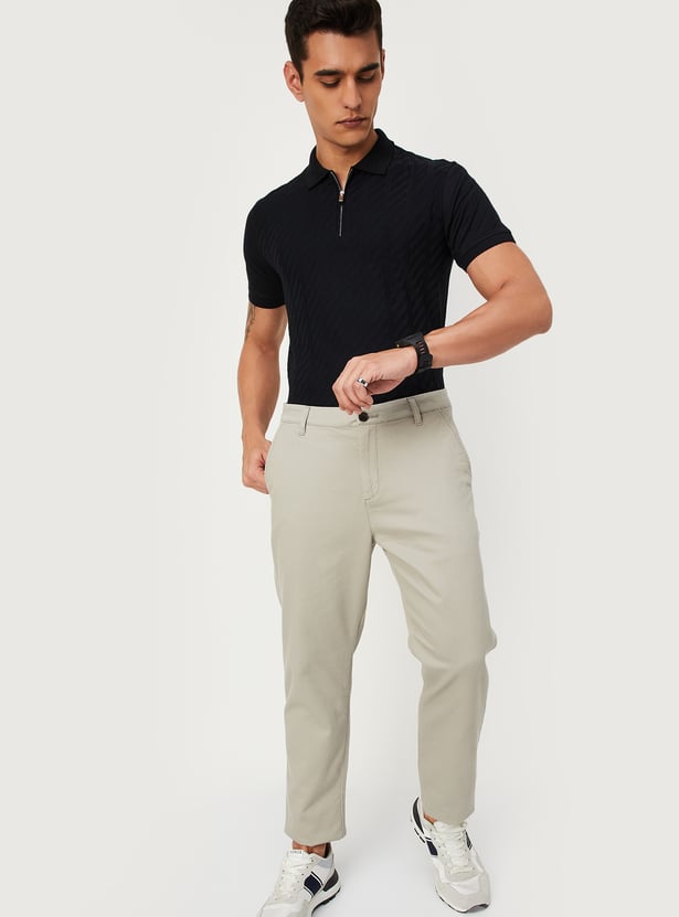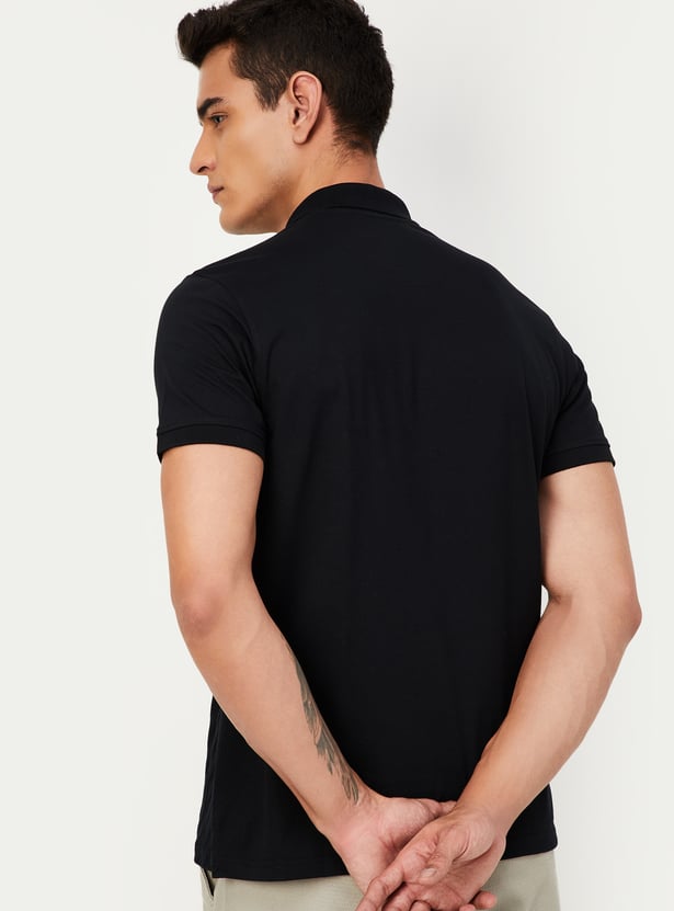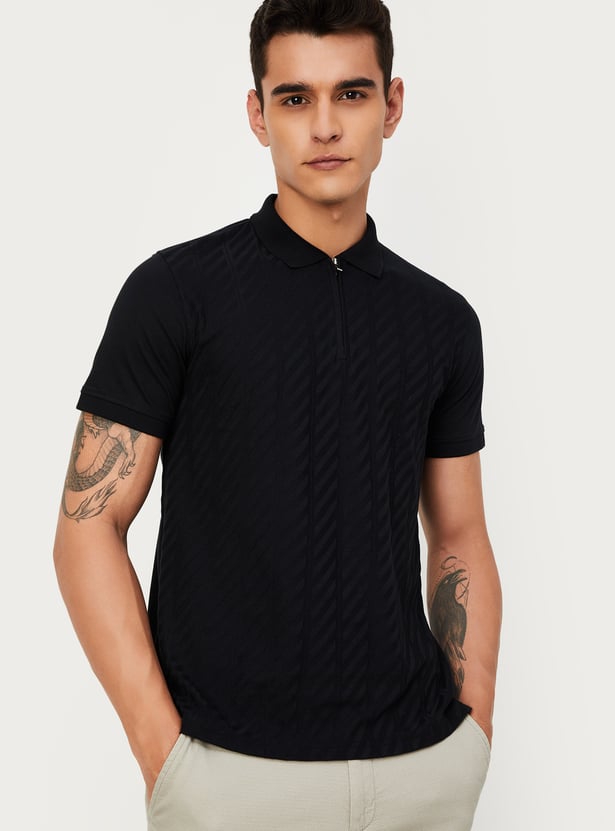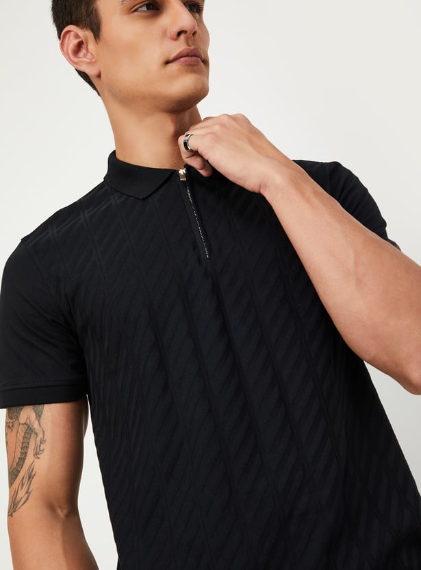Enhance your style with this polo T-shirt. This textured T-shirt has short sleeves with zipper closure and a straight hem perfect for an uncompromised stylish look.
