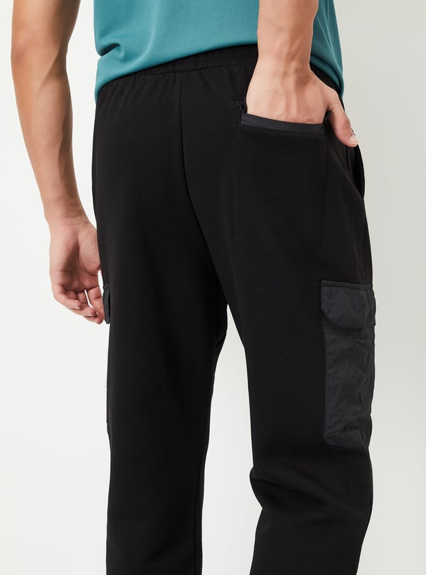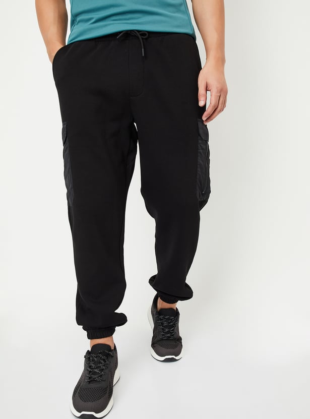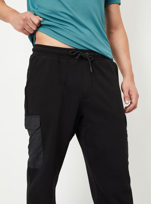 Work out in style with these skinny-fit joggers. Featuring a drawstring waist, side pockets, a back flap pocket, and a cargo pocket on the side, they offer both functionality and a sleek look.