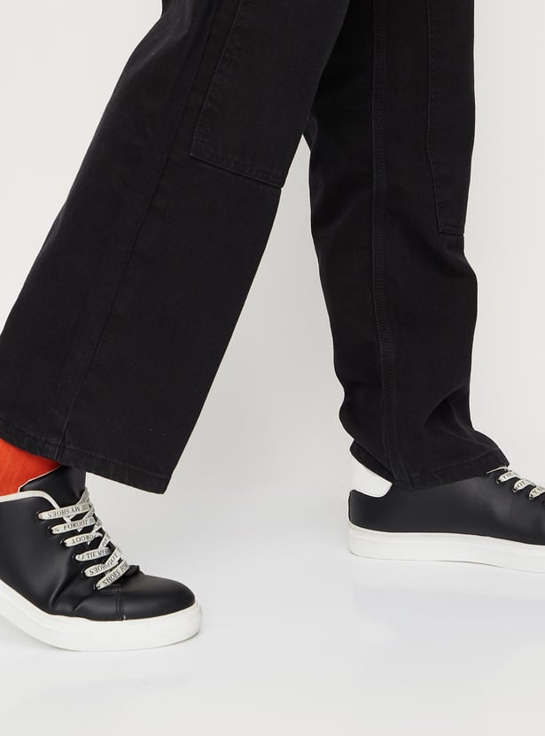A blend of utility and street style, this pair of jeans showcases a carpenter clothing-inspired construction. It features a belt loop waist, 4 pockets plus oversized side pockets and a decorative tab. To ace the look, style this pair of jeans with a tee and sneakers.