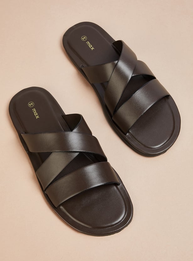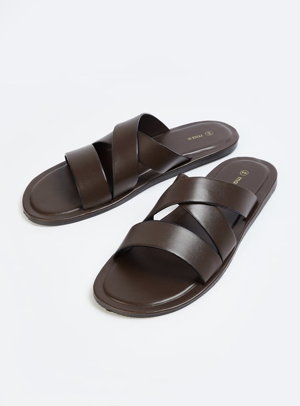 Update your style with this pair of sandals featuring a double strap upper, an open toe, a cushioned insole, and a durable, grooved outsole for maximum grip.