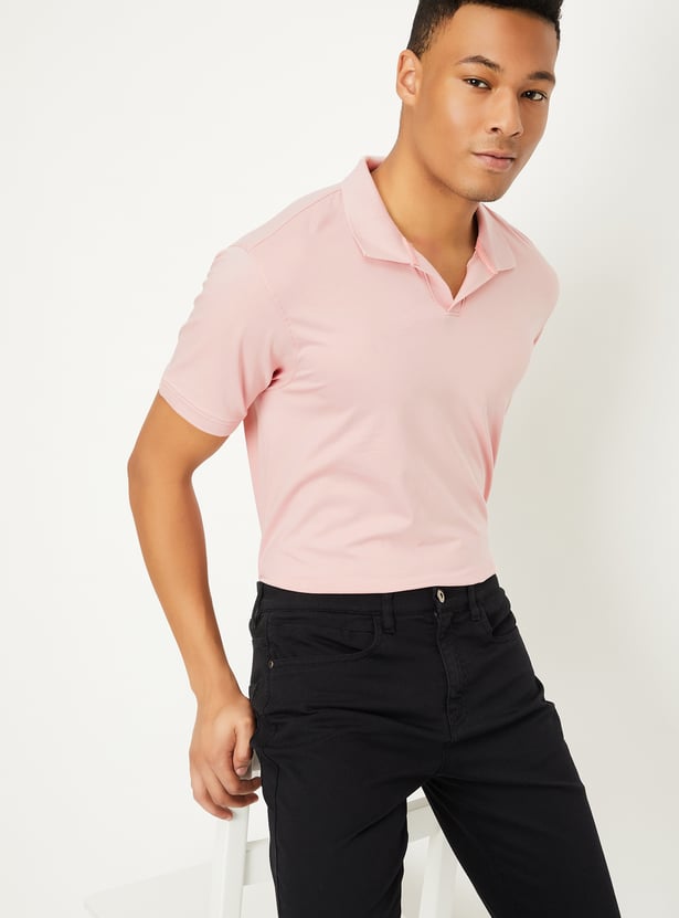 This solid polo T-shirt brings the perfect mix of classic and modern style. With a johnny collar and half sleeves, it's a versatile piece for any casual outing.