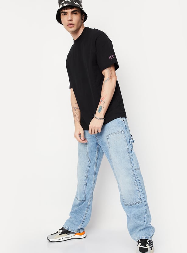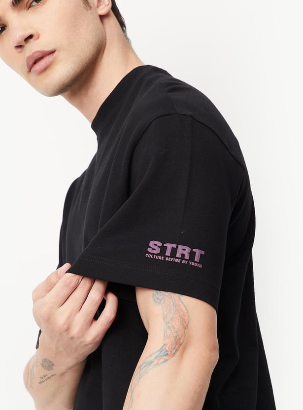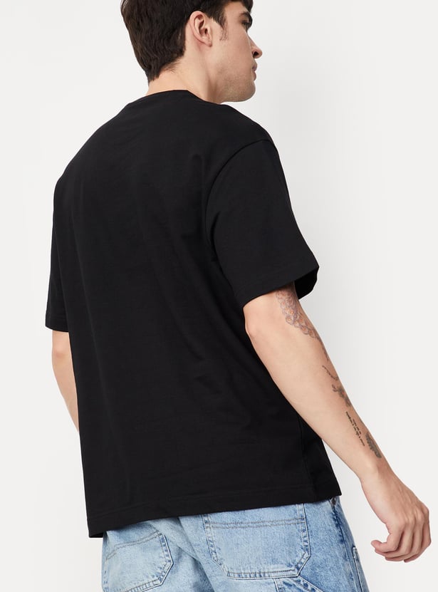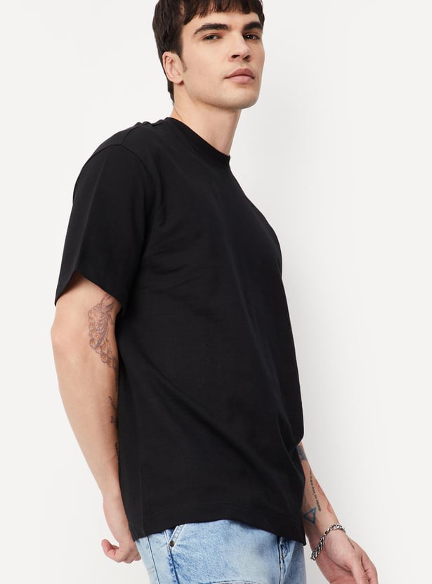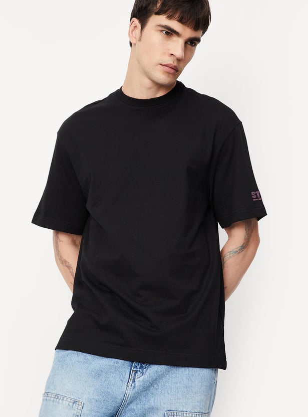 Time for a makeover of your style quotient with this oversized T-shirt which has a crew neck, solid surface, and half sleeves. Team it up with a pair of jeans and lace-up shoes to complete the look.
