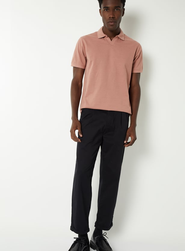 Men Solid Regular Fit Johnny Collar T-shirt