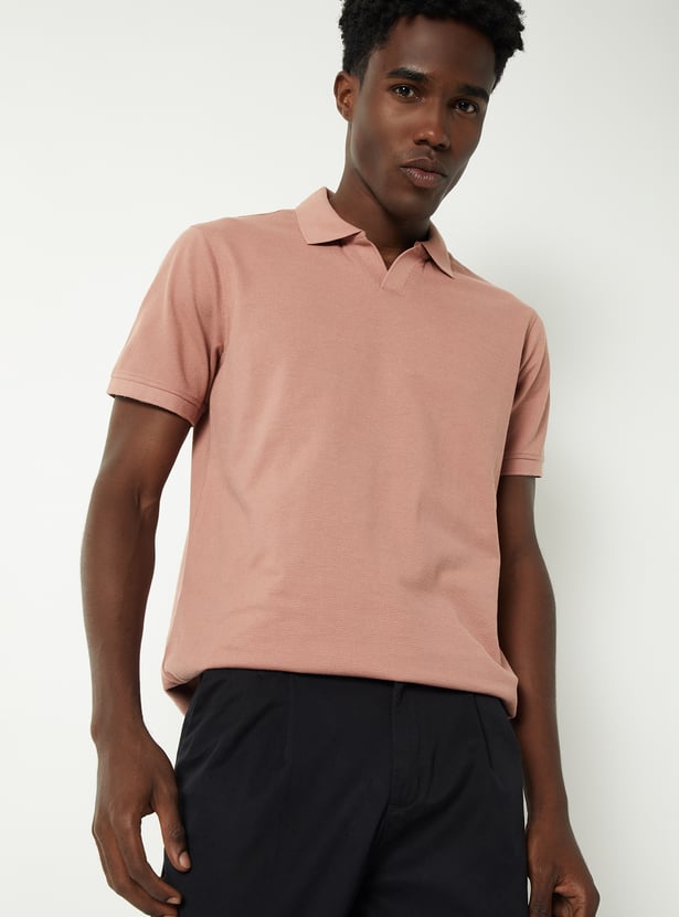 This solid johnny collar T-shirt features a refined Johnny collar and half sleeves. Designed in a regular fit, it offers a clean, versatile look that works effortlessly from day to evening.