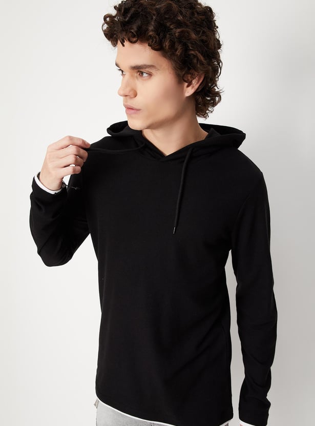 Men Solid Slim Fit Hooded T-shirt