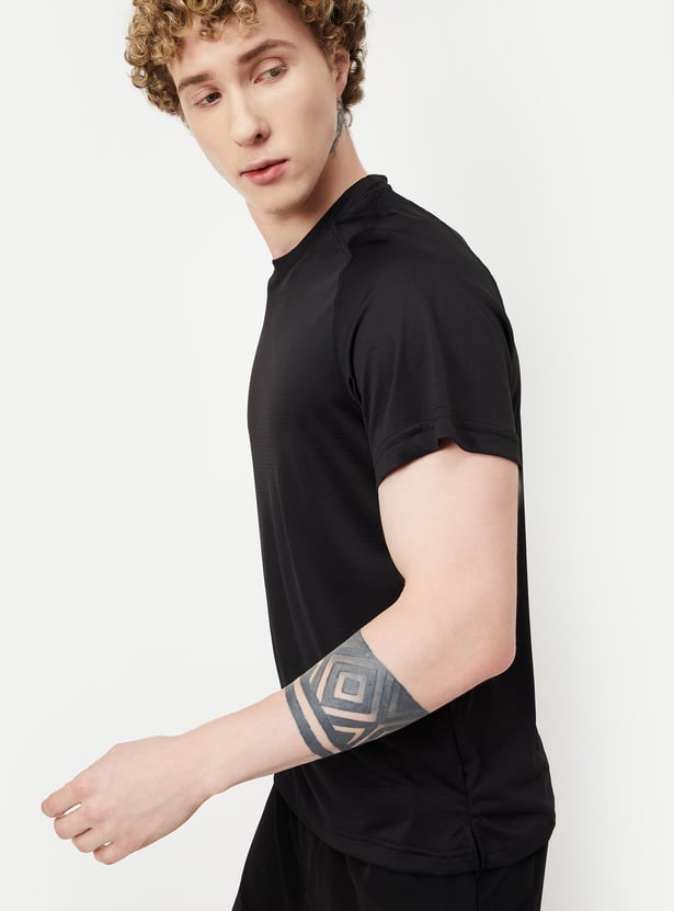 This solid slim fit T-shirt is a versatile essential for any wardrobe. Featuring a classic crew neck and half sleeves, it offers a clean, streamlined look that's perfect for layering or wearing solo.