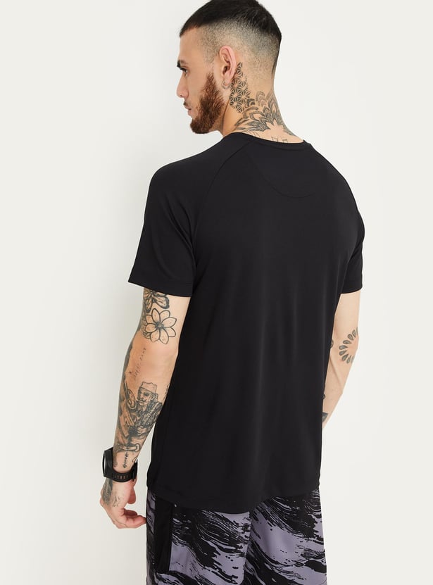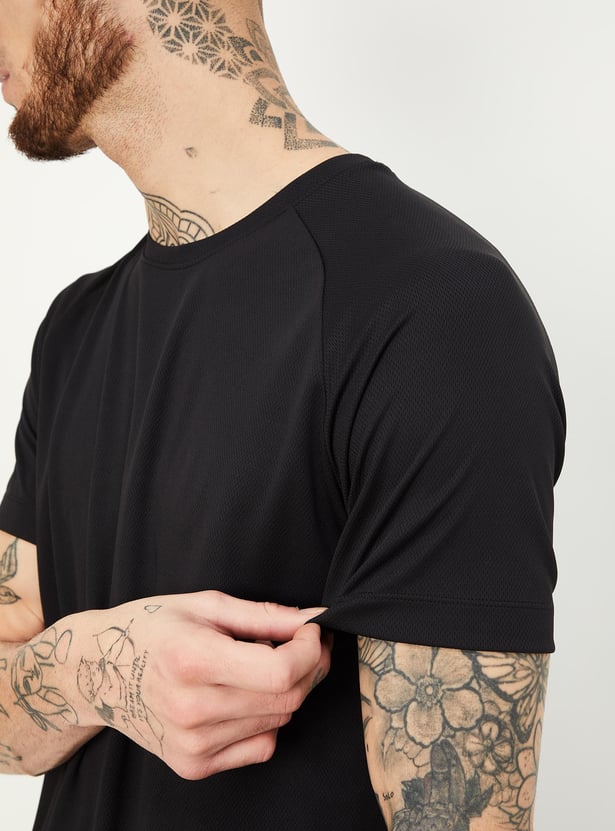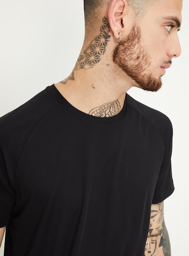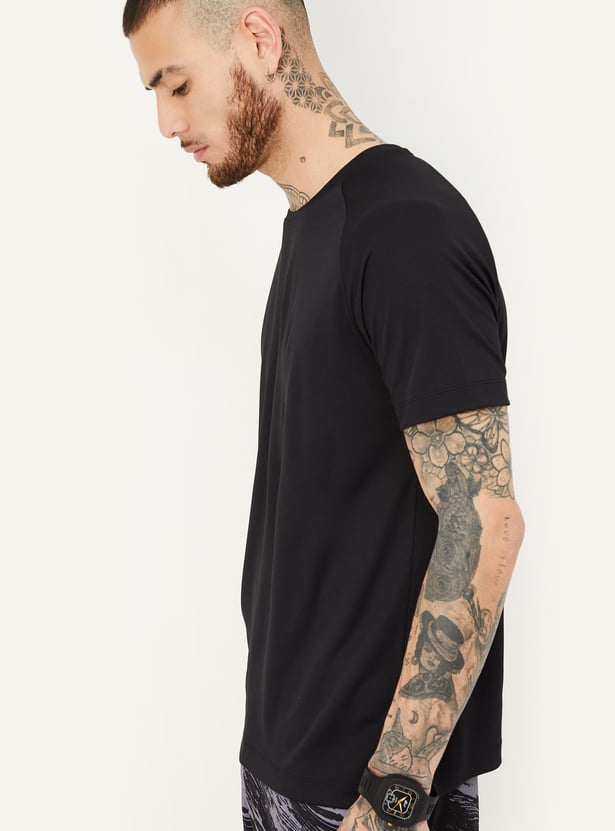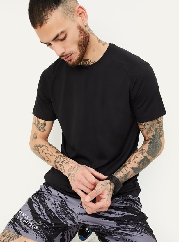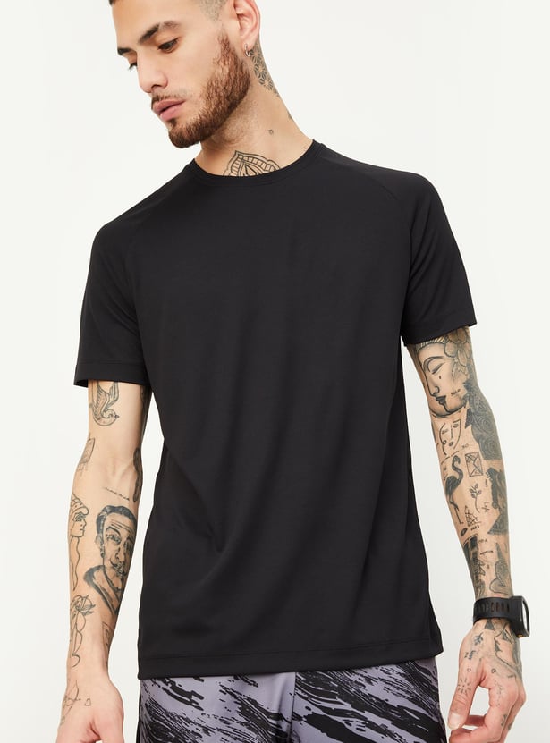 Elevate your gym game with this solid sports t-shirt. Designed with a sleek crew neck and stylish raglan sleeves, it keeps you comfortable and looking sharp during your workouts.