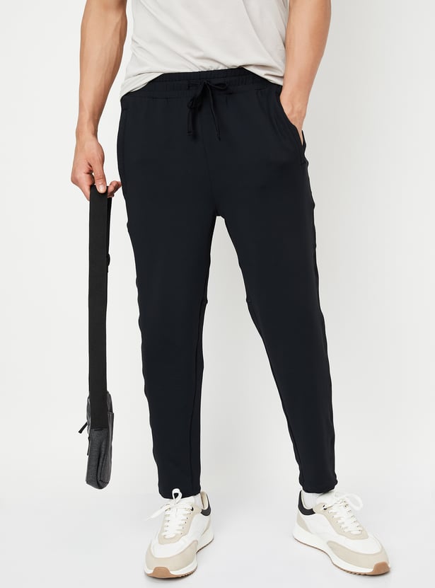 Stay comfortable and stylish in these solid mid-rise track pants, designed with a drawstring closure for an adjustable fit. Featuring insert pockets for added convenience, they’re perfect for both lounging and casual outings.
