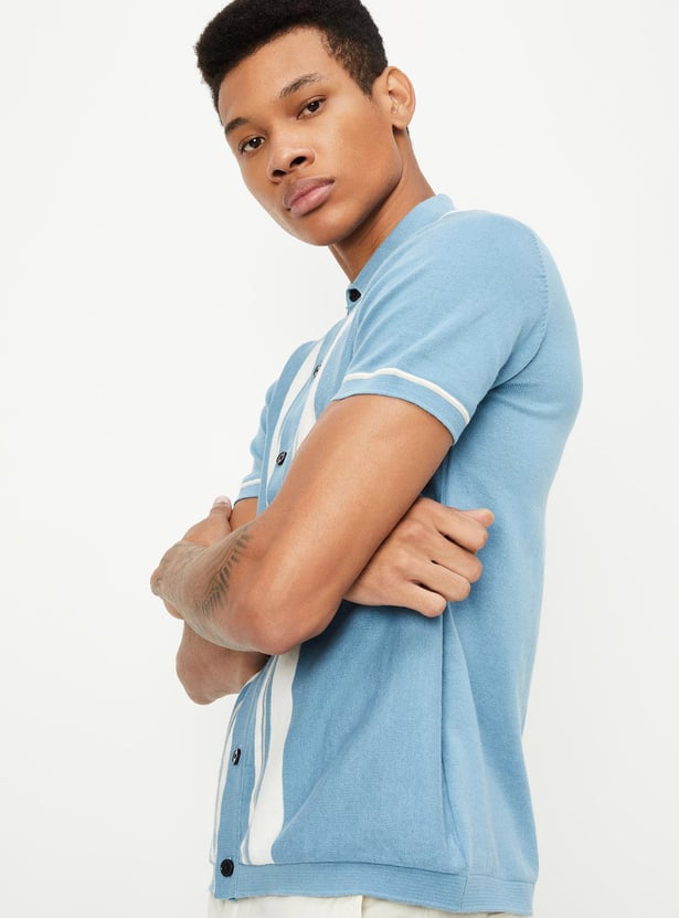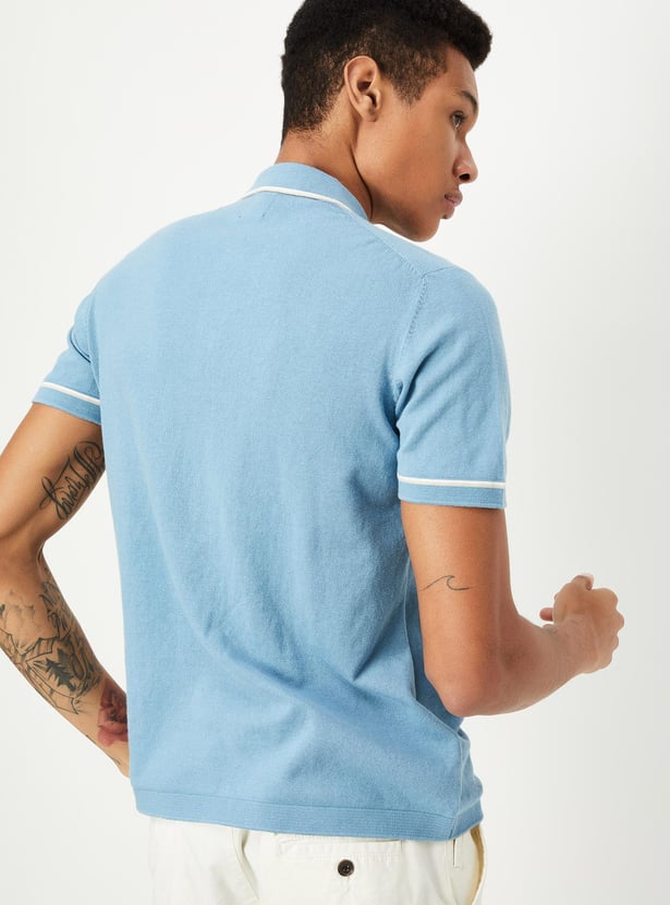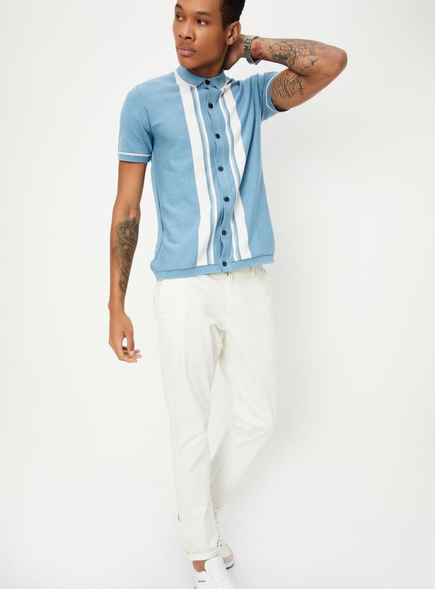 Enhance your weekend wardrobe with this polo t-shirt. It includes a polo collar, half sleeves and a full button placket that completes the utility aspect of the style. Additionally, a unique striped pattern makes it a captivating choice.