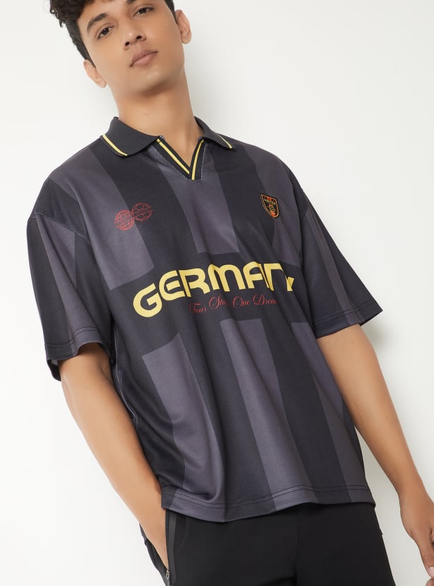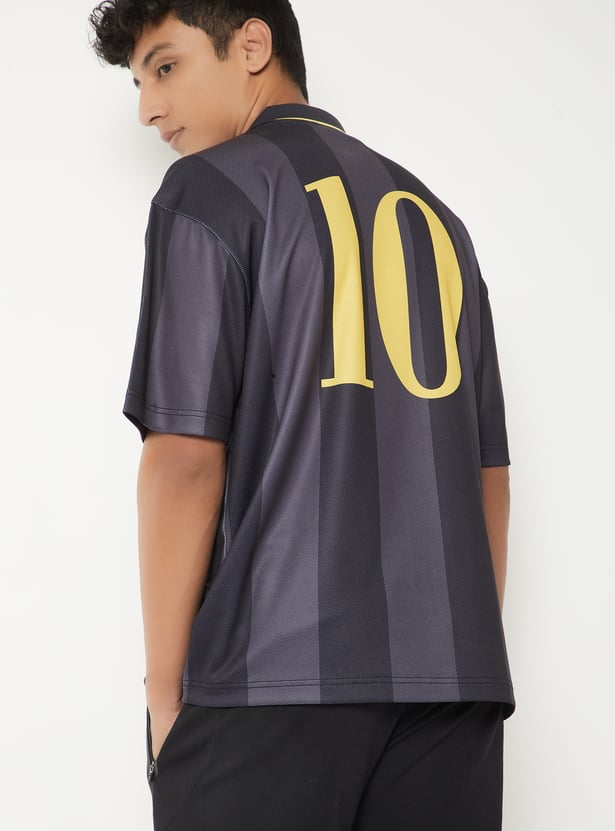 Keep it casual and stylish with this striped oversized Johnny collar t-shirt, designed for a relaxed fit and modern appeal. Featuring a Johnny collar and half sleeves, it’s crafted from soft fabric with bold stripes that add a touch of character to the oversized silhouette.