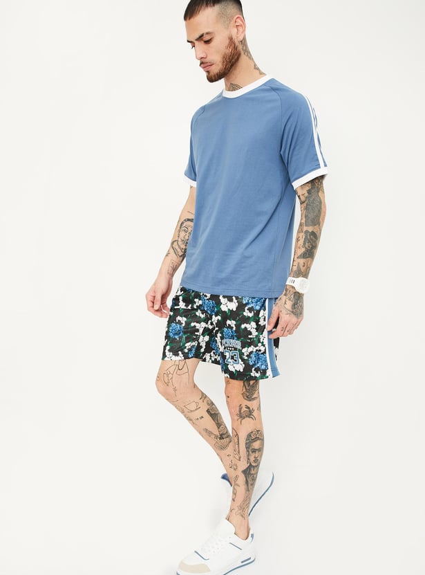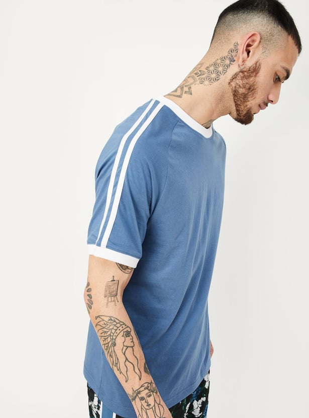 Perfect for the gym or field, this T-shirt is updated with a striped detail on the shoulders and sleeves. It is designed with a contrast crew neck and raglan sleeves.