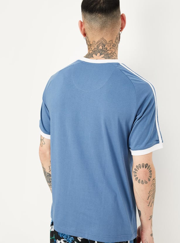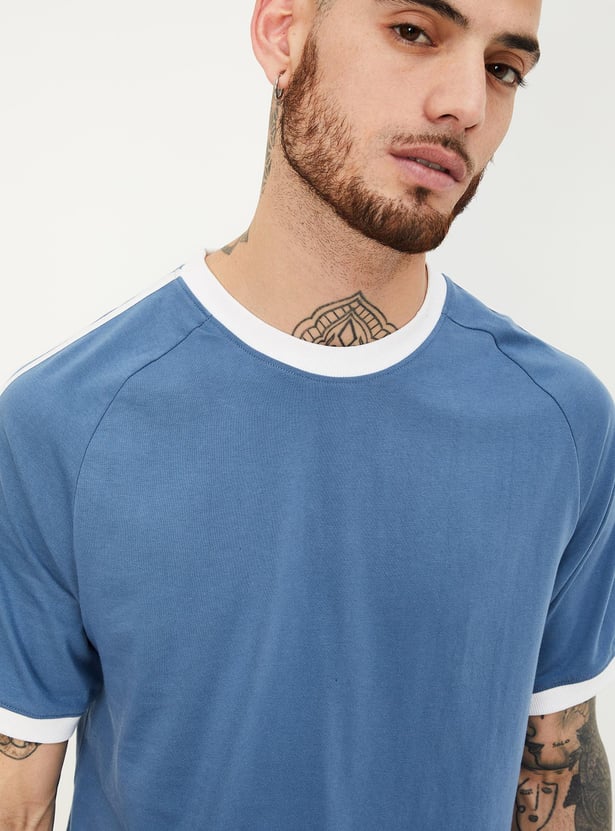Men Striped Raglan Sleeve Sports T-shirt